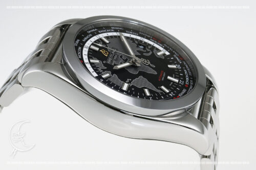 コメント ブライトリング初の3針自社製キャリバーB35を搭載したワールドタイムモデル「ギャラクティック ユニタイム スリーク ティー」。世界地図がデザインされたダイアルデザインが印象的です。裏蓋に1ヵ所小キズがあります。その他薄らとした軽い擦りキズはありますが、目立つ様な深いキズはなく全体的には良いコンディションです。