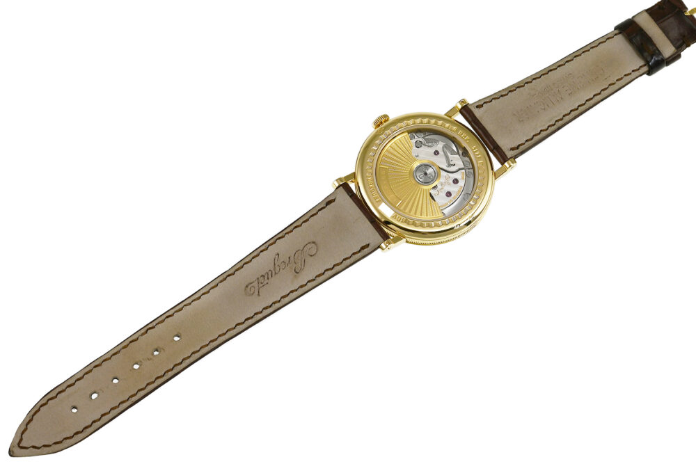 コメント 1775年、天才時計師アブラアン-ルイ・ブレゲがフランス・パリで創業した歴史ある高級時計ブランド「ブレゲ」。アンクルとガンギ車にシリコン素材を使用した、クラシックで上品なモデル「クラシック・シリシオン」。キレイなダイアルが魅力的で、ブルースチールブレゲ針やケース側面のコインエッジなど、ブレゲのデザインが十分に堪能出来ます。3時側ケースサイド(12分方向)に極小キズ、9時側ケースサイド(52分方向)に小キズがあります。その他は細かな軽い擦れはありますが目立つ様なキズはありません。国内正規店にて購入品、2018年7月に正規修理サービスにてオーバーホールしています。