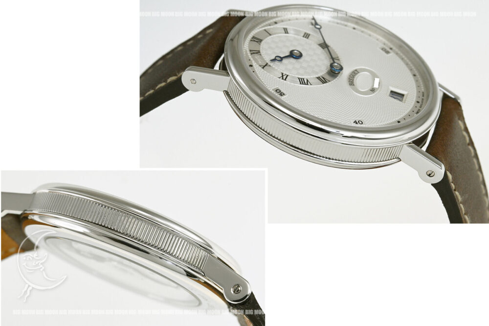 | コメント | 1775年、天才時計師アブラアン-ルイ・ブレゲがフランス・パリで創業した歴史ある高級時計ブランド「ブレゲ」。時・分針が独立した「クラシック・レギュレーター」、小振りな36mmケースのプラチナモデルです。ブルースチールブレゲ針、ケース側面のコインエッジ、ギョーシェ彫りの文字盤などブレゲのデザインが十分に堪能出来ます。この型は生産終了しています。9時側ケースサイドに線キズ(1.8cm程)があります。その他若干の軽い小キズ・擦りキズはありますが目立つ様な深いキズはありません。文字盤の12時インダイアル(12時と1時の間)に1mm程の極薄っすらとした線キズがあります(正面からは分からず目立ちません)。国内正規店にて購入品です。 |