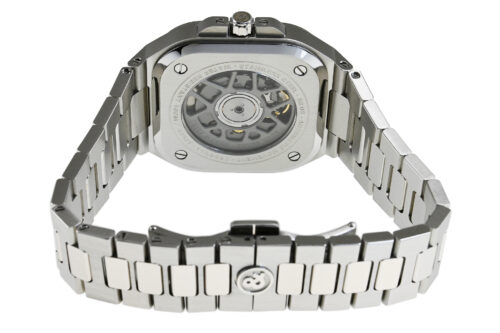 | コメント | 1991年にブルーノ・ベラミッシュとカルロス・ロシロの旧友2人によりフランス・パリで誕生した「ベル&ロス」。過酷な状況に挑むプロフェッショナル達が使用するにふさわしい完璧な時計作りをコンセプトとしております。「丸」と「四角」を組合わせたケースデザインが特徴的な「BR 05」コレクション。スマートで都会的な印象のオシャレなデザインが魅力的です。使用に伴う若干のキズ・擦りキズがあります。国内正規店にて購入品です。 |
