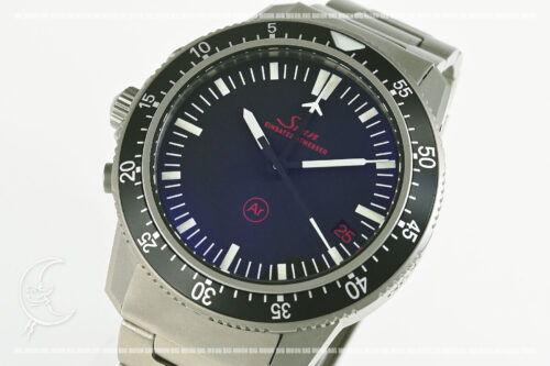 | コメント | ジン人気モデル「503.EZM-1」。ドイツ税関犯罪局税関特殊先頭部隊(EZM1)ZUZ制式クロノグラフモデルです。左側に設置されたリューズが特徴的、レマニア社製キャリバー5100を搭載しています。アルゴンガス充填やドライカプセル、ジン特殊オイルなどジン独自の機構を搭載。2008年に限定250本で発売されたモデルで、3時側ケースサイドに限定シリアル刻印入りです。使用に伴う多少の擦りキズはありますが目立つ様な深いキズはありません。国内正規店にて購入品です。 |