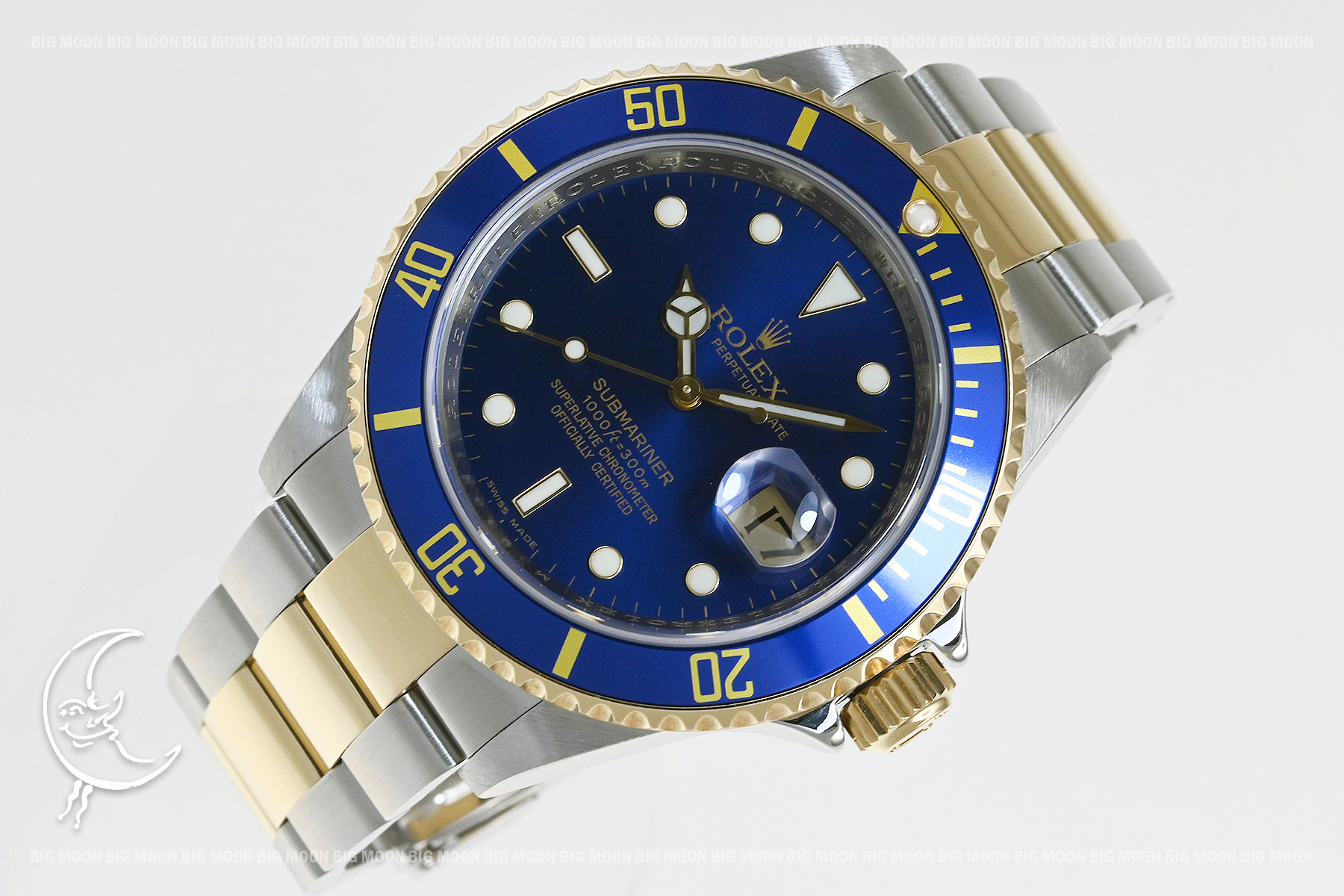 | コメント | 1953年の発売以来、不動の人気を誇る人気ダイバーズウォッチ「サブマリーナー」。色鮮やかなブルーにK18イエローゴールドが華やかな人気コンビモデル「青サブ Ref.16613」、生産終了モデルです。少々の軽い擦りキズはありますが目立つ様なキズはありません。2018年5月に正規修理サービスにてオーバーホールしています。 |