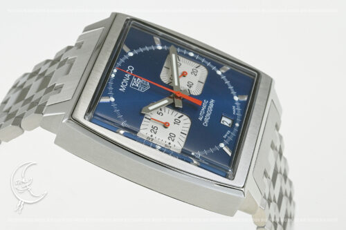 クラシックシリーズ人気角型モデル「モナコ」。スクエアケースを備えた世界初の防水時計で、世界初の自動巻クロノグラフという歴史があります。