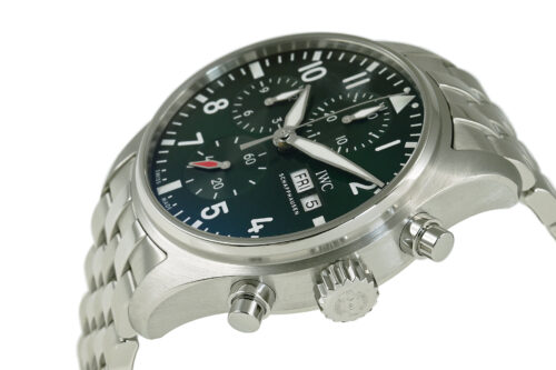 | コメント | スポーティーなデザインが魅力的なパイロットウォッチ・クロノグラフ、自動巻モデルです。オシャレなグリーンダイアルが特徴的、自社製キャリバー69385を搭載しています。使用に伴う若干の軽い小キズ・擦りキズはありますが目立つ様な深いキズはありません。付属の革ベルトは若干の使用感はありますが目立った傷みや汚れはありません。ガラス10時と12時の間辺りに擦りキズがあります。国内正規店にて購入品です。 |
