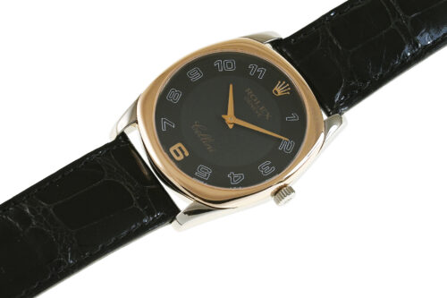 コメント 独特な雰囲気のロレックスドレスウォッチ「チェリーニ ダナオス」手巻モデルです。2トーンカラーのブラックダイアル、薄型で小振りなサイズ感が魅力的です。使用に伴う少々の軽い擦りキズはありますが目立つ様な深いキズはありません。国内正規店にて購入品です。