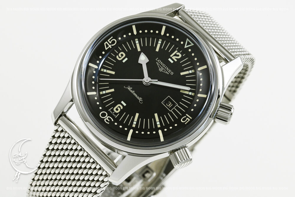 | コメント | 1960年代の傑作ダイバーモデルを復刻した「レジェンドダイバー」、小振りな36mmサイズの自動巻モデルです。ヴィンテージ感のあるオシャレなモデルです。2時のリューズでインナーベゼルを動かし、4時のリューズで時間を調整、上下ともねじ込み式です。3時位置にデイト表示を備えております。バックル部分など少々の軽い擦りキズはありますが目立つ様な深いキズはありません。 |