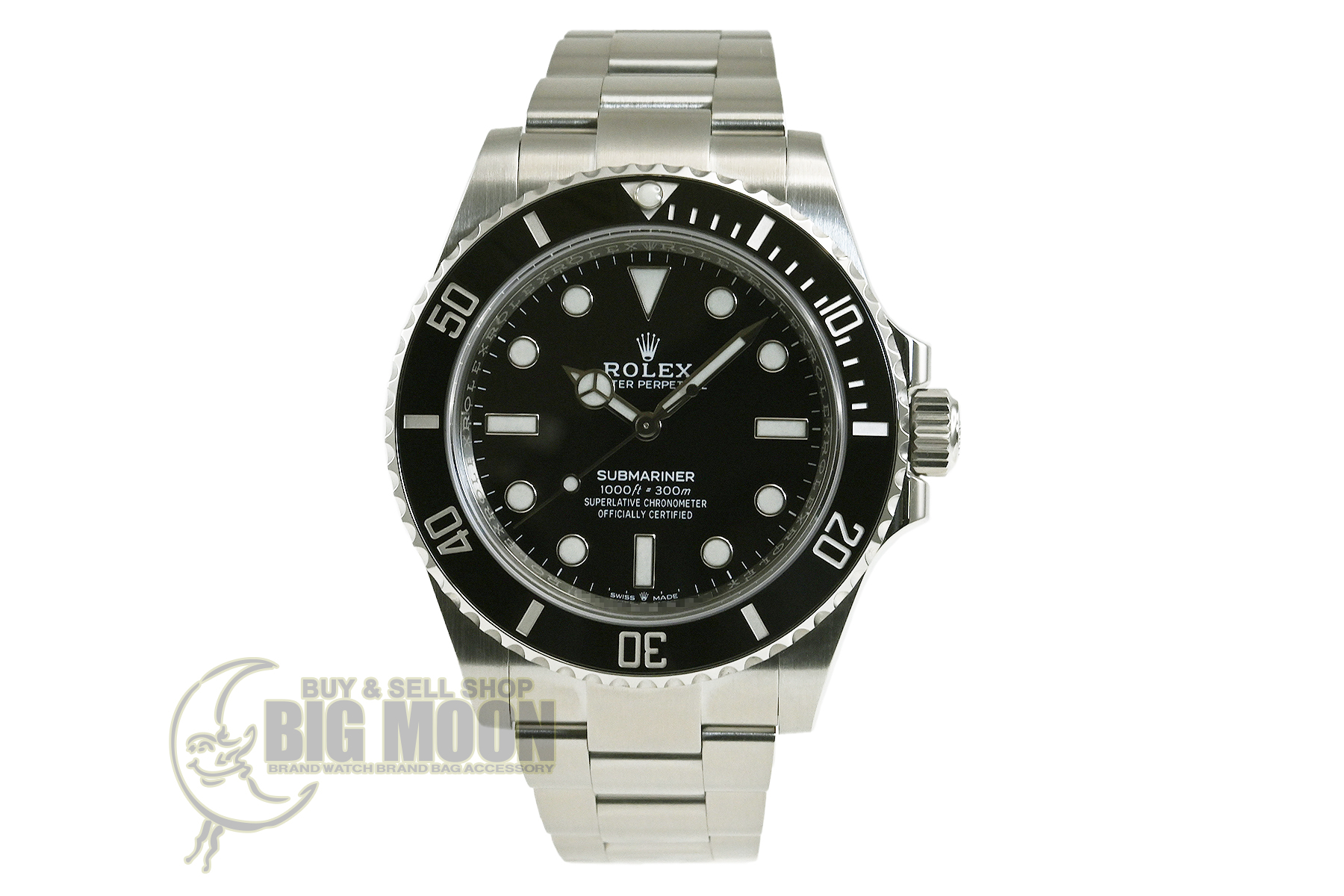 | コメント | 1953年に世界初の100mの防水性をもつ時計として誕生した「サブマリーナー」。セラミックベゼル、グライドロッククラスプ機能搭載ブレスを採用した「サブマリーナー・ノンデイト Ref.124060」です。ロレックス完全自社製造の高精度クロノメーターキャリバー3230を搭載しております。少々の軽い擦りキズ(ダブルロックの王冠マーク付近に仕上げの際の軽い磨きスジあり)はありますが目立つ様な深いキズはありません。 |