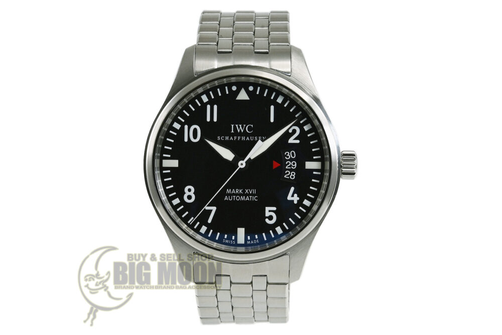 コメント IWCの人気パイロットウォッチ「マークシリーズ」。1940年代製の人気モデル「マーク11」が築いた伝統を引き継いだデザインとなっており、高い視認性・耐磁性などパイロットウォッチに必要なスペックが十分に備わったモデルです。2012年から2016年に発売された5代目マーク XVIIはシリーズの中では最大の41mmケース、3日間のデイト表示が特徴的です。裏蓋の鏡面部分にキズがあります。その他使用に伴う若干の軽い小キズ・擦りキズはありますが、目立つ様な深いキズはありません。ガラス無反射コーティングに少々の擦れがあります(正面からは分かりません)。2023年8月に当店契約の修理サービスにてオーバーホールしています。