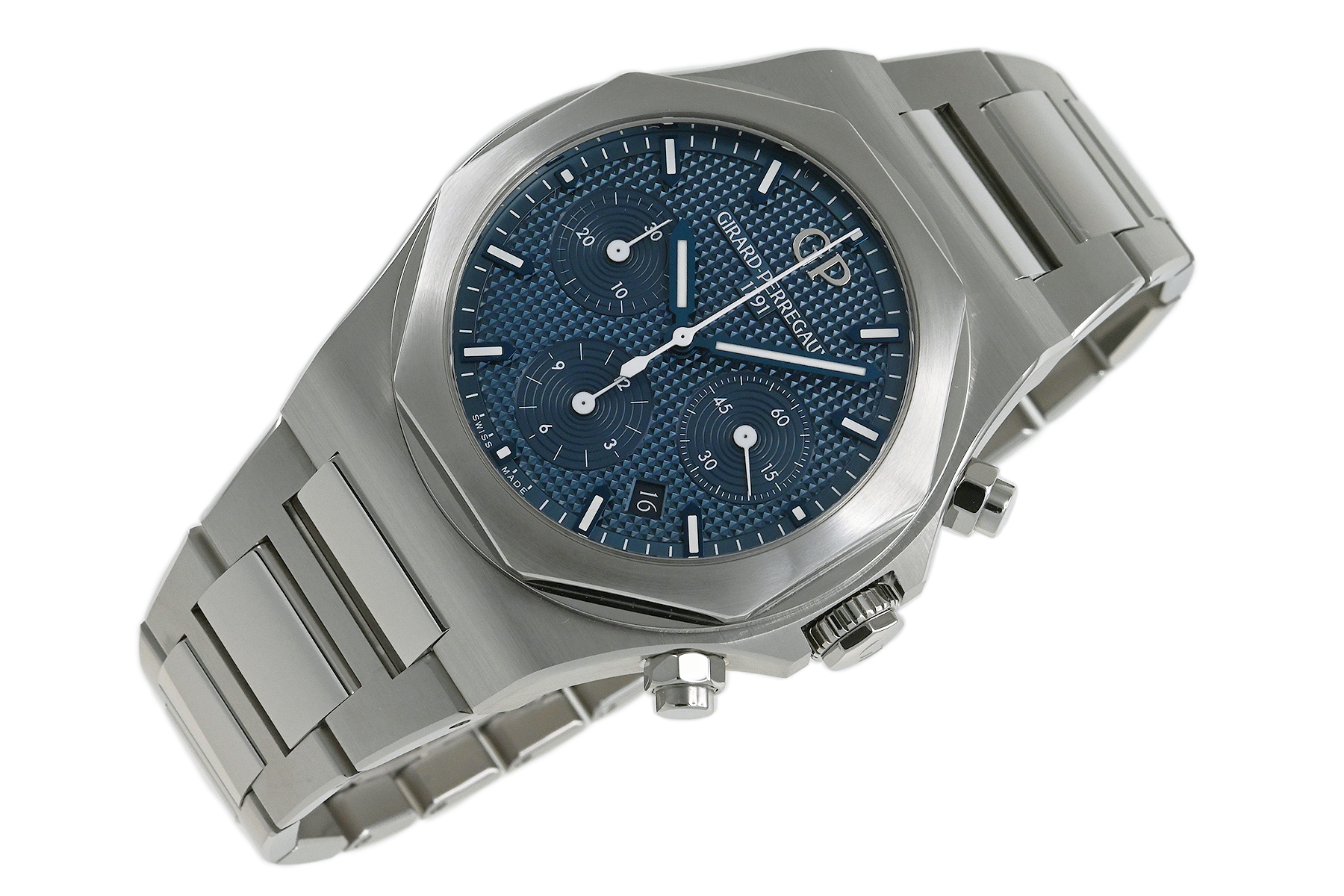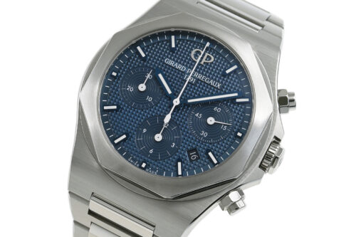 | コメント | 優れた機能性と品質、現在もマニュファクチュール(自社一貫生産)という伝統を貫く老舗ブランド「ジラール・ペルゴ」。スポーティ&エレガンス、8角形のベゼルが特徴的な「ロレアート」、42mmケースサイズの自動巻クロノグラフモデルです。46時間パワーリザーブの自社製キャリバーGP03300を搭載、「クル・ド・パリ」仕上げを施したダイアルが印象的です。薄らした若干の軽い擦りキズはありますが目立つ様な深いキズはありません。 |