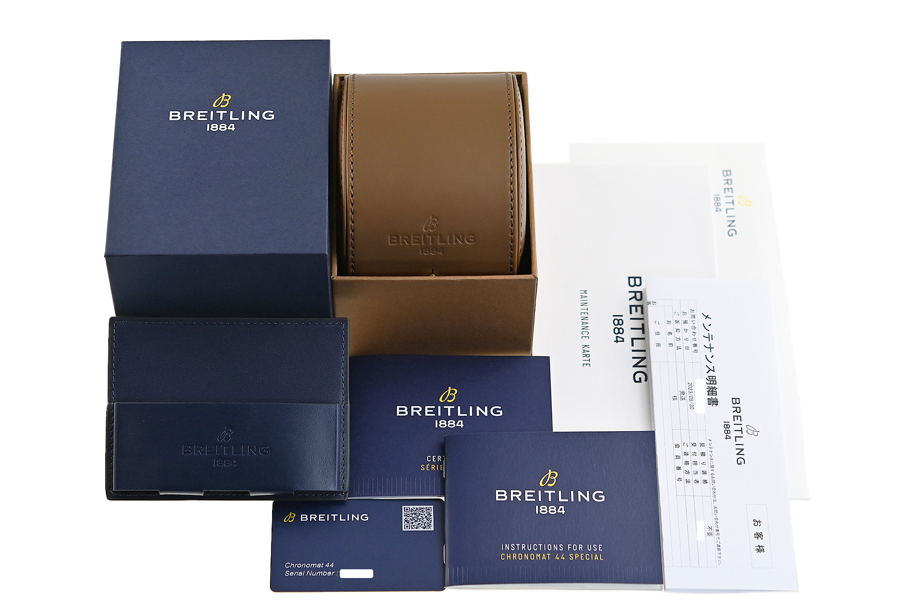 | コメント | 1984年に初代モデルが誕生して以来、現在も進化し続けている「クロノマット」。ブライトリング史上初の自社開発ムーブ「B01」を搭載した「クロノマット44」のジャパンスペシャルエディションモデル「クロノマット JSP」です。ブラックマザー オブ パールにブラックインダイヤルを組み合わせた独特な雰囲気を醸し出すダイアルが魅力的な日本限定モデルです。若干の軽い擦りキズはありますが目立つ様な深いキズはありません。2023年10月に正規修理サービスにてメンテナンス(自動巻機構洗浄・注油)を受けております。 |