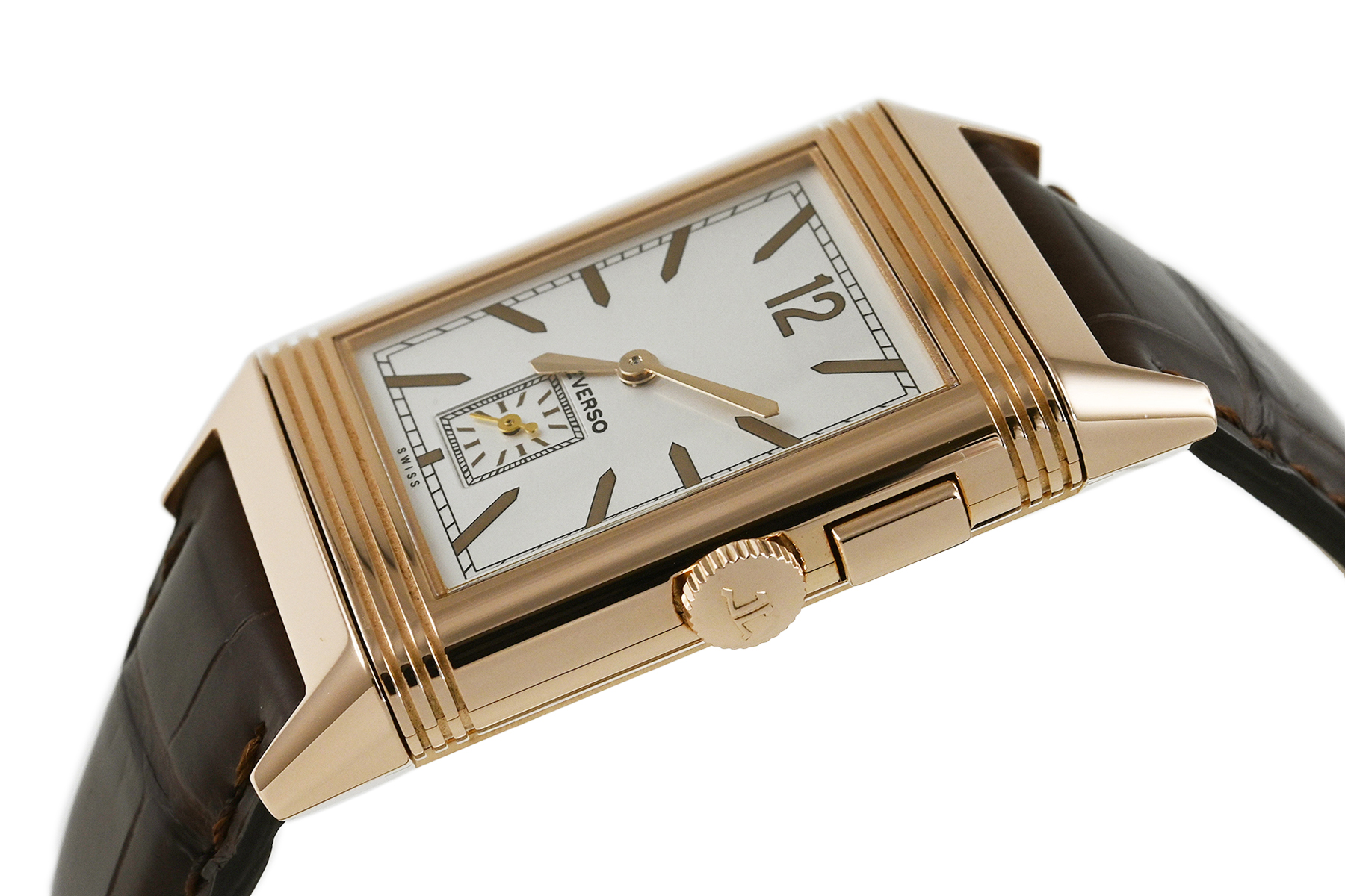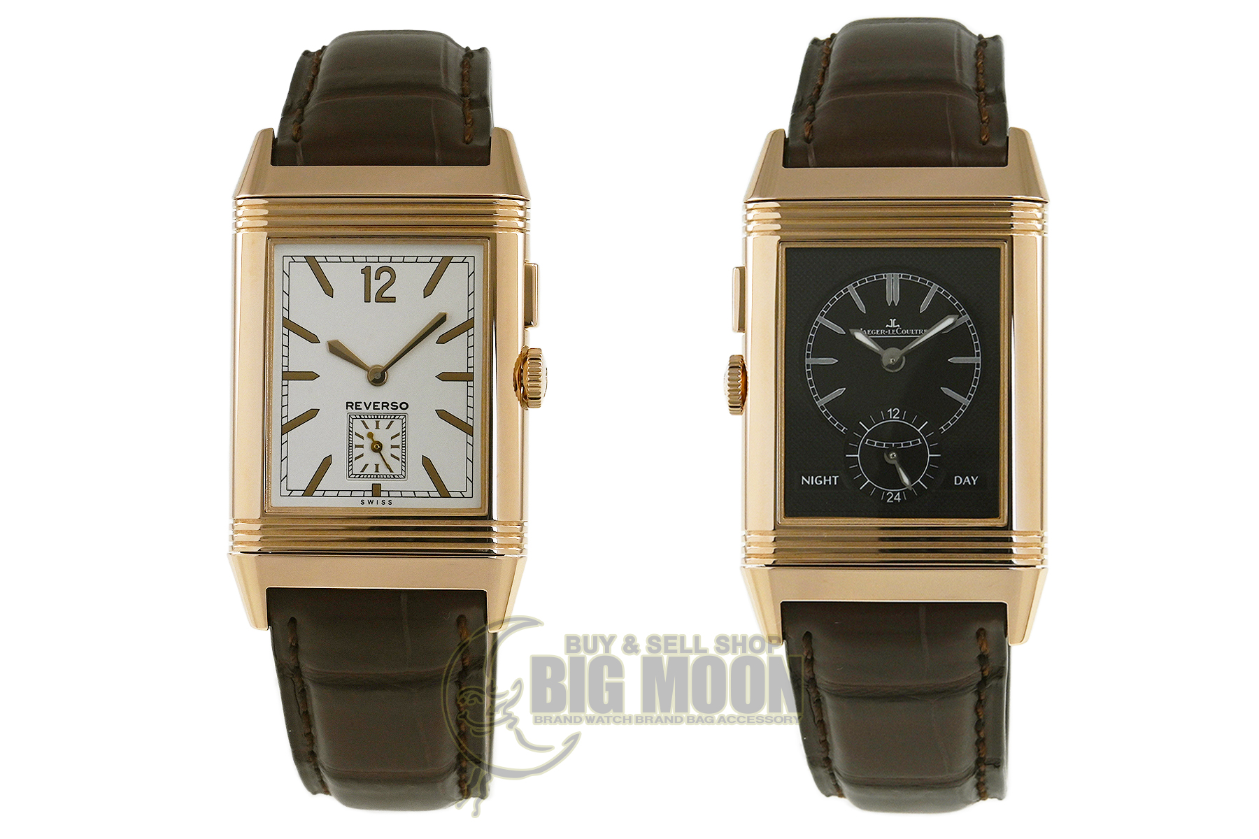 | コメント | マニュファクチュール (自社一貫生産) ブランド「ジャガールクルト」。ケースを反転させ2つの顔を持つジャガールクルト傑作モデル「レベルソ・デュオ」、K18ピンクゴールド手巻モデルです。おもて面に時・分・秒表示、裏面に第2時間帯、24時間表示を備えています。少々の軽い擦りキズはありますが目立つ様な深いキズはありません。国内正規店にて購入品です。 |