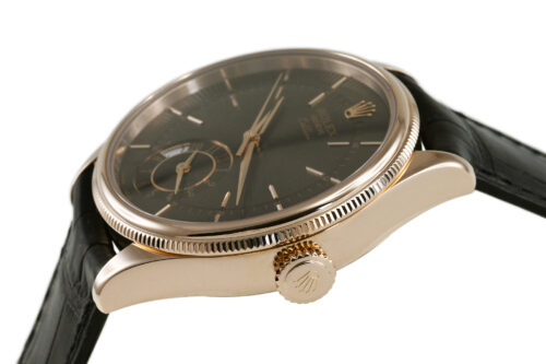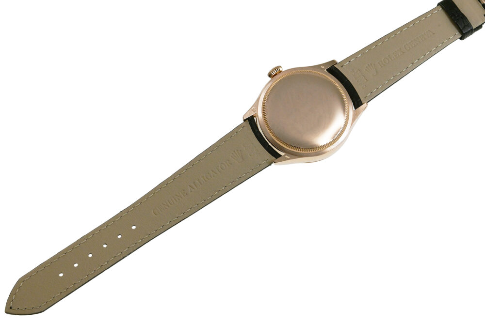 | コメント | インパクトあるギョーシェダイアルやダブルベゼルが印象的な「チェリーニ・デュアルタイム」、K18エバーローズゴールド自動巻モデルです。エレガントで存在感のあるデザインが素敵です。6時位置に第2時間帯を表示し、小窓上で太陽と月のシンボルが昼と夜を示します。ロレックス完全自社製造の高精度クロノメーターキャリバー3180を搭載。僅かな小キズ、軽い擦れはありますが目立つ様な深いキズはありません。2023年10月に正規修理サービスにて革ベルト交換、時間調整、内部点検調整をしています。 |