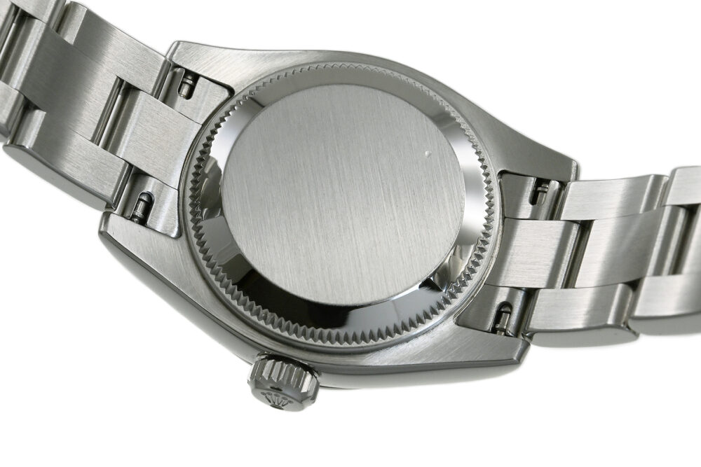 | コメント | 日付のないシンプルな「オイスターパーペチュアル」、レディース自動巻モデルです。視認性の良いブラックダイアルが魅力的、ピンクバーインデックスがアクセントとなっております。裏蓋に1ヶ所小キズがあります。その他少々の軽い擦りキズはありますが目立つ様な深いキズはありません。 |