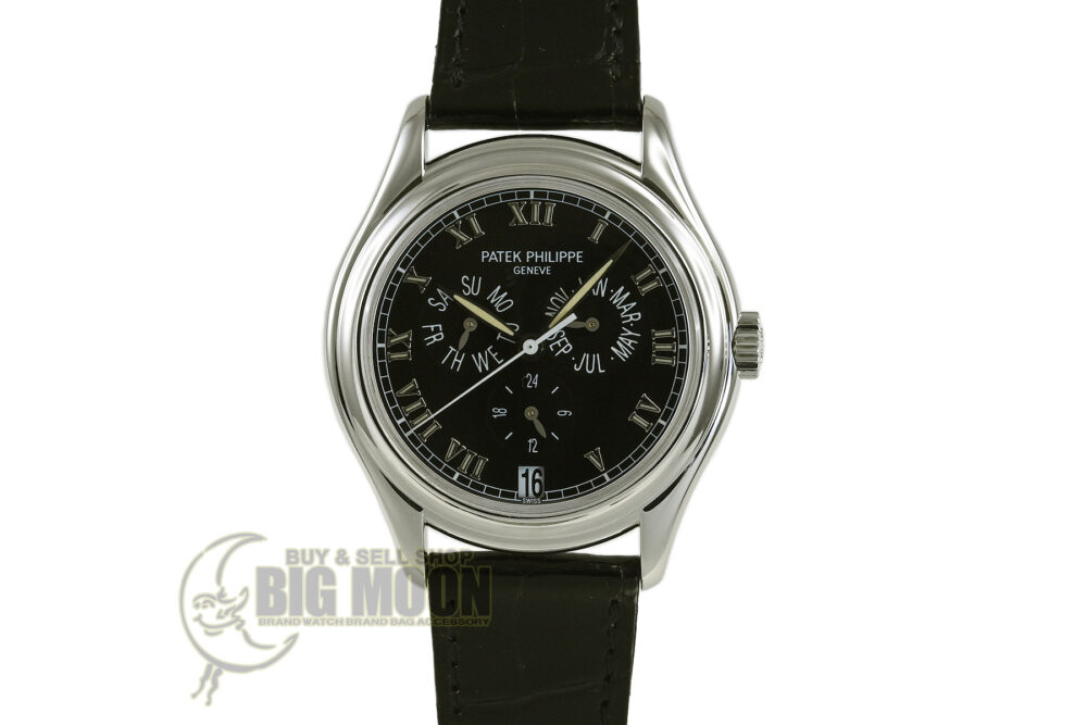 | コメント | コンプリケーションコレクションモデル、24時間計付き「年次カレンダー」、プラチナモデルです。この型は生産終了となっております。僅かな擦れはありますが目立つ様なキズはありません。純正革ベルト(ロングサイズ)は未使用です。 |