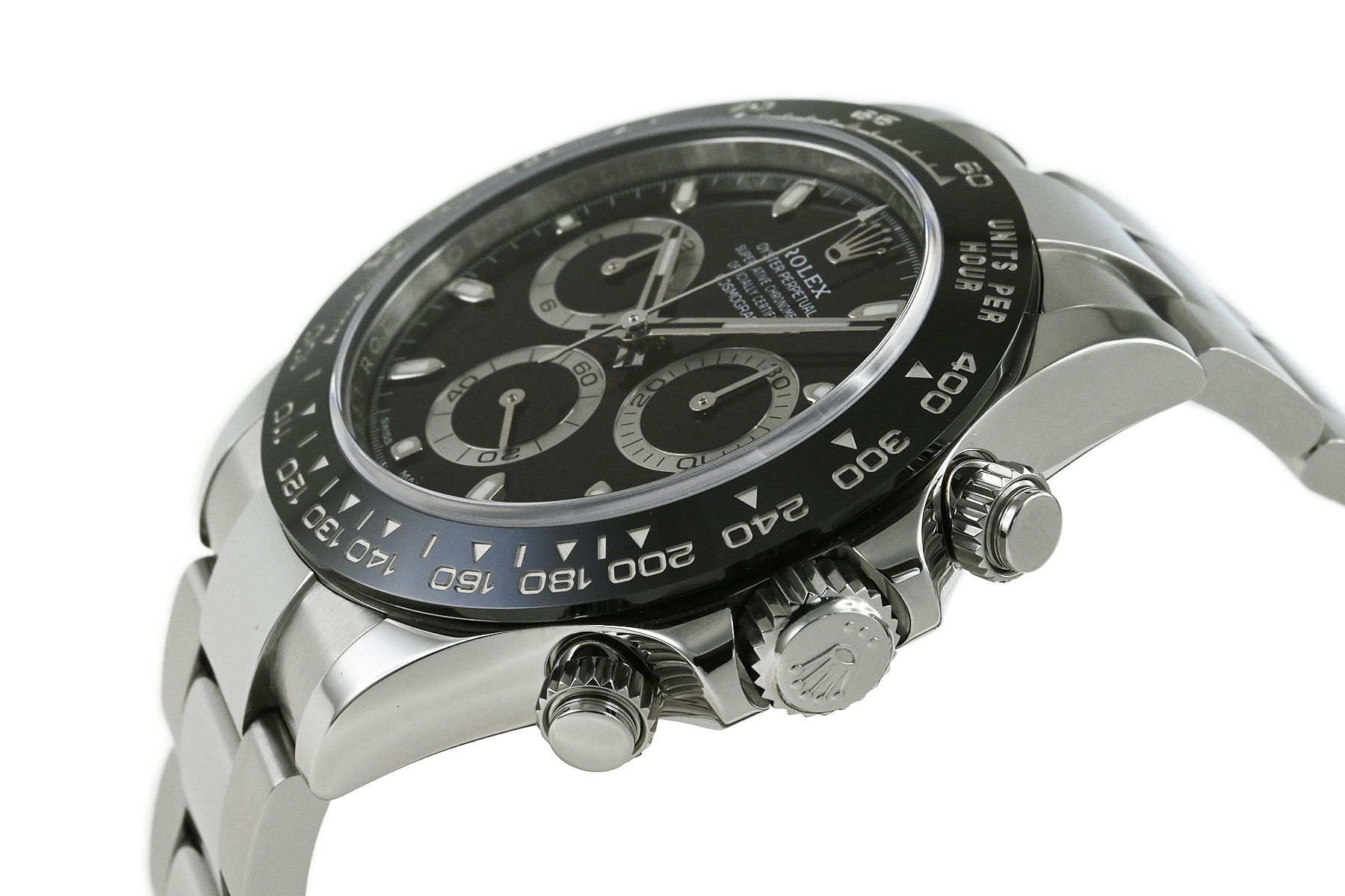 | コメント | 1963年に誕生した人気スポーツロレックス「コスモグラフ デイトナ」。2016年発売開始の「116500LN」、ブラックセラクロム(セラミック)ベゼルを装備したステンレスモデルです。ロレックス完全自社製造の高精度クロノメーターキャリバー4130を搭載しています。使用に伴う多少の細かな軽い擦りキズはありますが目立つ様な深いキズはありません。 |