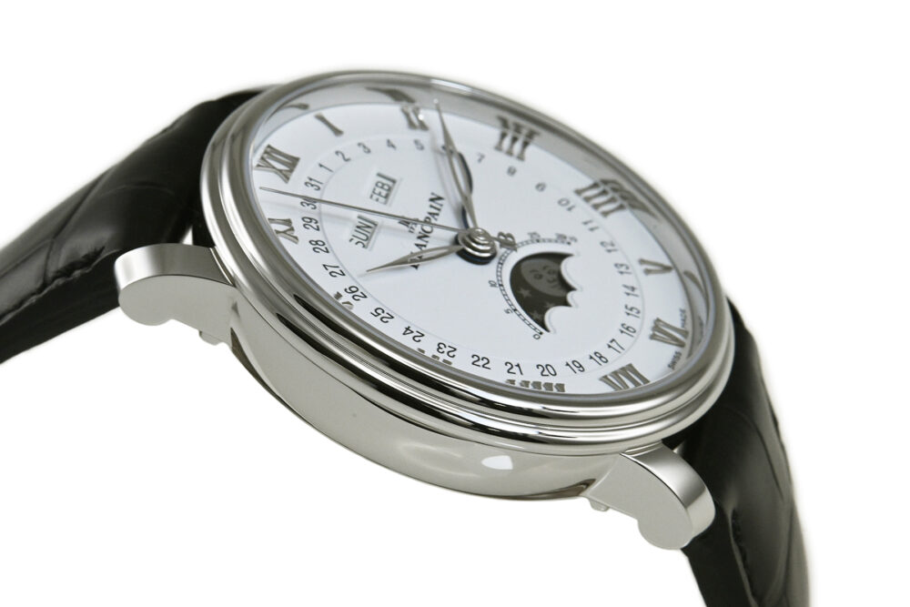 | コメント | 1735年創業の世界最古の時計ブランド「ブランパン」。ブランパン発祥の地より名付けられたクラシカルなデザインが素敵な「ヴィルレ」コレクションのコンプリートカレンダーモデルです。 月・日・曜日を表示する複雑機構 コンプリートカレンダーとムーンフェイズを搭載、約72時間のパワーリザーブを備えたキャリバー6654を搭載しています。少々の細かな軽い擦りキズはありますが目立つ様な深いキズはありません。国内正規店にて購入品です。 |