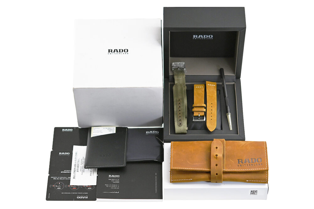 | コメント | 1917年スイスで創業の「ラドー」。1962年のオリジナルモデルを復刻したヴィンテージ調のデザインが魅力のキャプテンクック コレクション、トラベルポーチや交換ベルトが付属した限定モデルです。バックルなど若干の軽い擦りキズはありますが目立つ様な深いキズはありません。 |