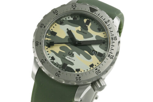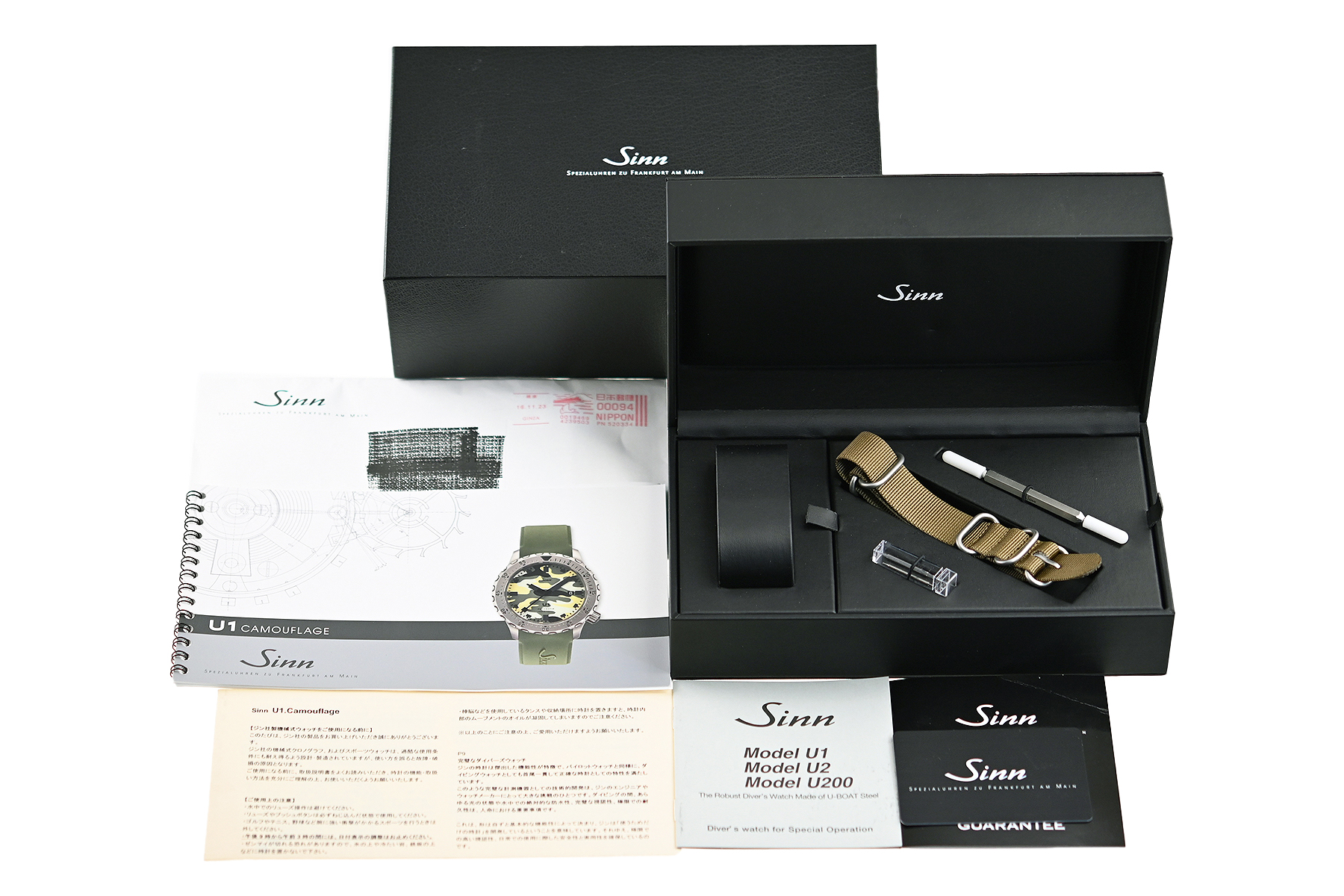 | コメント | ジン社が開発した究極のプロフェッショナル・ダイバーズ・ウォッチ「U1」。ドイツ最新鋭潜水艦Uボート・スチール製のケースにカモフラージュダイアルを組合わせた世界500本限定モデルです。国内正規店にて購入品、未使用の状態です。 |