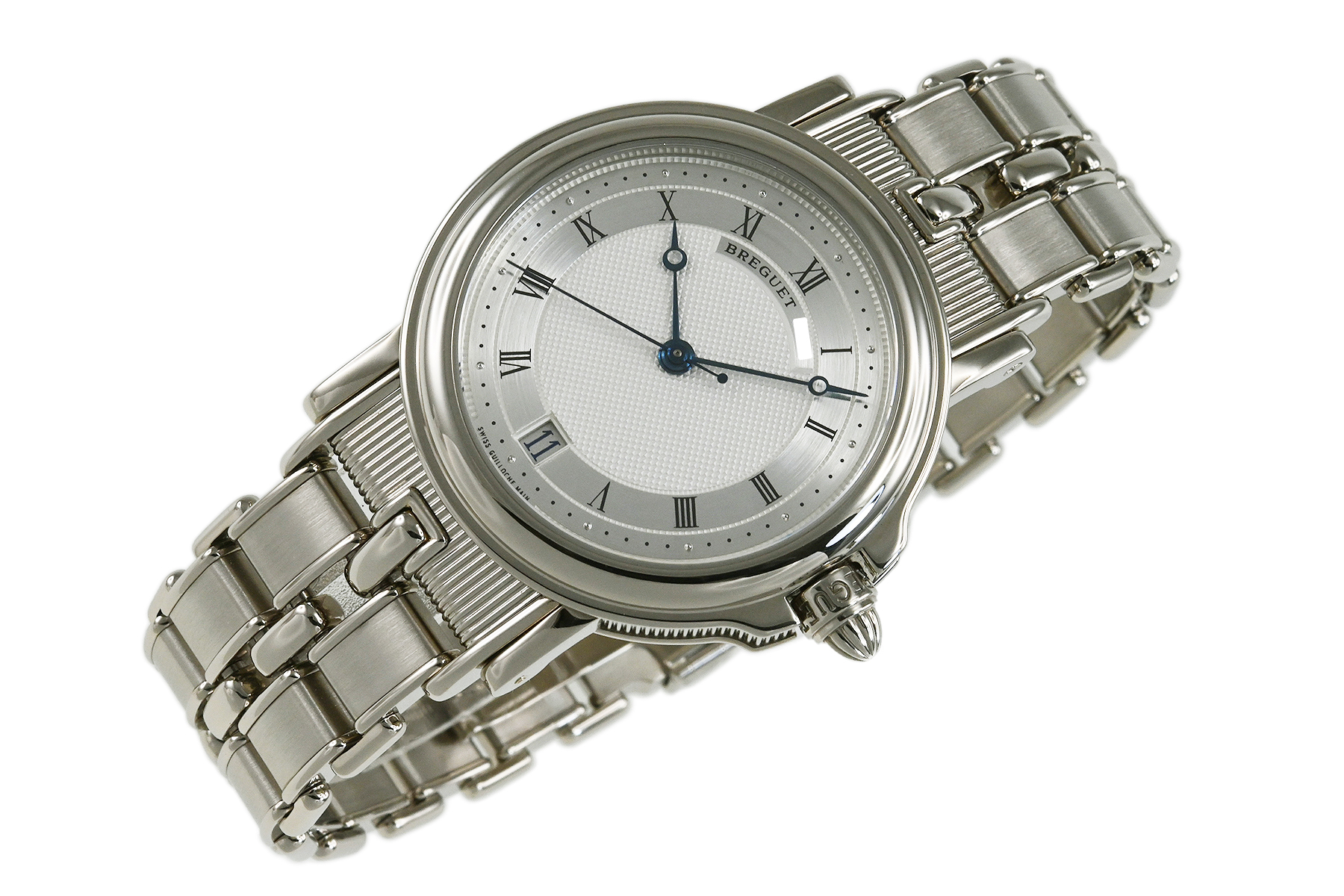 | コメント | 1775年、天才時計師アブラアン-ルイ・ブレゲがフランス・パリで創業した歴史ある高級時計ブランド「ブレゲ」。ブレゲの伝統的なデザインを取り入れたスポーツモデル「マリーン」自動巻モデルです。ケース径35mmの小振りなサイズで、ケース・ブレスレットにはK18ホワイトゴールドを採用しています。6時位置に日付を備えています。裏蓋など使用に伴う若干の小キズ・擦りキズはありますが目立つ様な深いキズはありません。2024年3月に当店契約の修理サービスにてオーバーホールをしています。 |