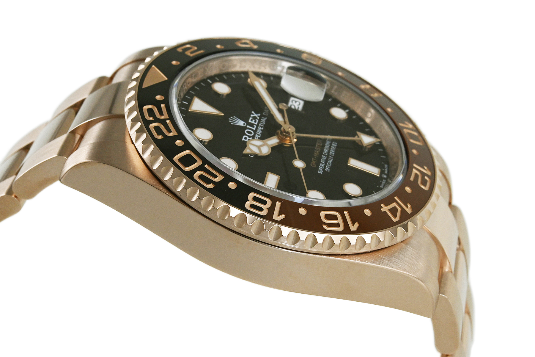 | コメント | 1955年に誕生した「GMTマスター」。進化したGMTマスターIIは回転ベゼルにより3箇所の時刻を知る事が出来ます。ケース・ブレスにK18エバーローズゴールドを採用、耐久性に優れたブラウン/ブラックカラーのセラクロムベゼルが印象的です。約70時間のパワーリザーブを備えた新型ロレックスキャリバー 3285を搭載しています。僅かな軽い擦りキズはありますが目立つ様なキズはありません。 |