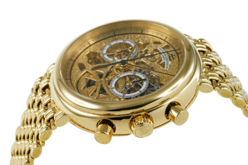 | コメント | 手作業で丁寧に仕上げられた美しいムーブメントが魅力的な「スケルトン・クロノグラフ」、K18イエローゴールドモデルです。ヴァシュロンのシンボル「マルタ十字」の装飾をした香箱が印象的です。若干の軽い擦れはありますが目立つ様な深いキズはありません。2024年7月に正規修理サービスにて修復サービス(オーバーホール(センタークロノ秒針・小針一式交換を含む)、シリアル再刻印、ポリッシング)をしています。 |