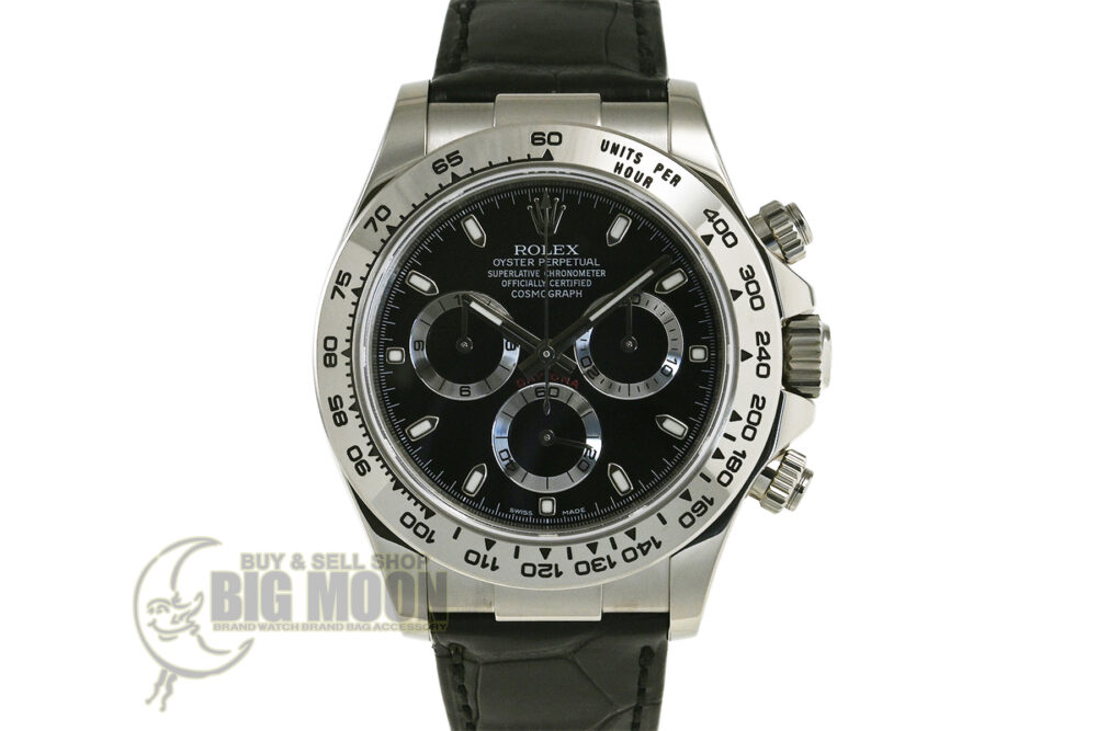| コメント | 1963年に誕生した人気スポーツロレックス「コスモグラフ デイトナ」、K18ホワイトゴールドモデルです。この型は生産終了しています。インダイアルなどの鏡面部分のコントラストが魅力的で、スポーティーでエレガントなデザインとなっております。僅かな小キズ、若干の薄っすら軽い擦りキズはありますが、目立つ様な深いキズはありません。 |