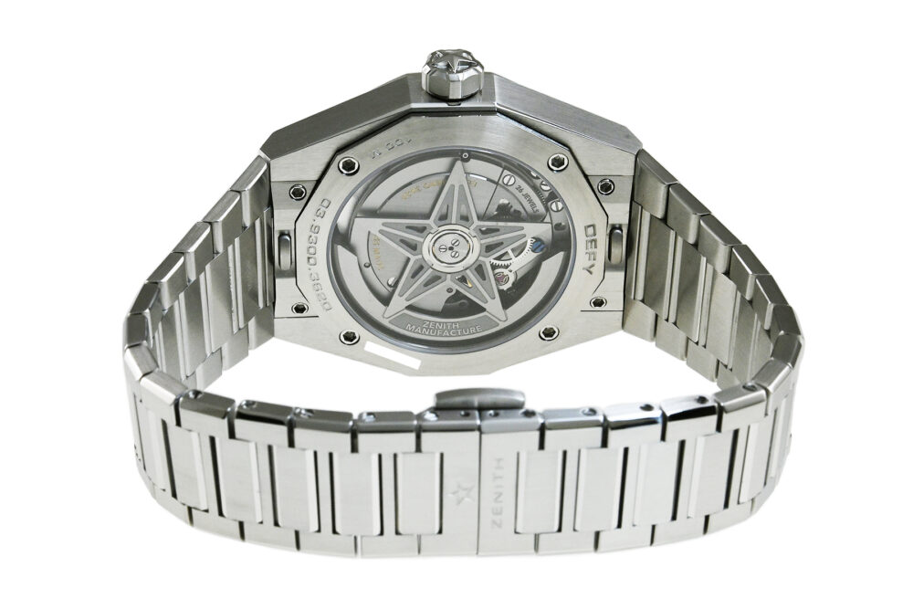 | コメント | 1865年創業のスイス老舗時計ブランド「ゼニス」。1/10秒精度を誇る初のインジケーターを備えた高振動の自動巻ムーブメント「エル・プリメロ 3620」を搭載した「デファイ スカイライン」。ファセットカットのベゼル、サンバースト仕上げを施したダイアルが特徴的です。クイックストラップチェンジ機構により、ブレスレットとラバーベルトがワンタッチで交換することができます。僅かな軽い擦りキズはありますが目立つ様なキズはありません。国内正規店にて購入品、2024年3月に正規修理サービスにてムーブメント点検をしています。 |