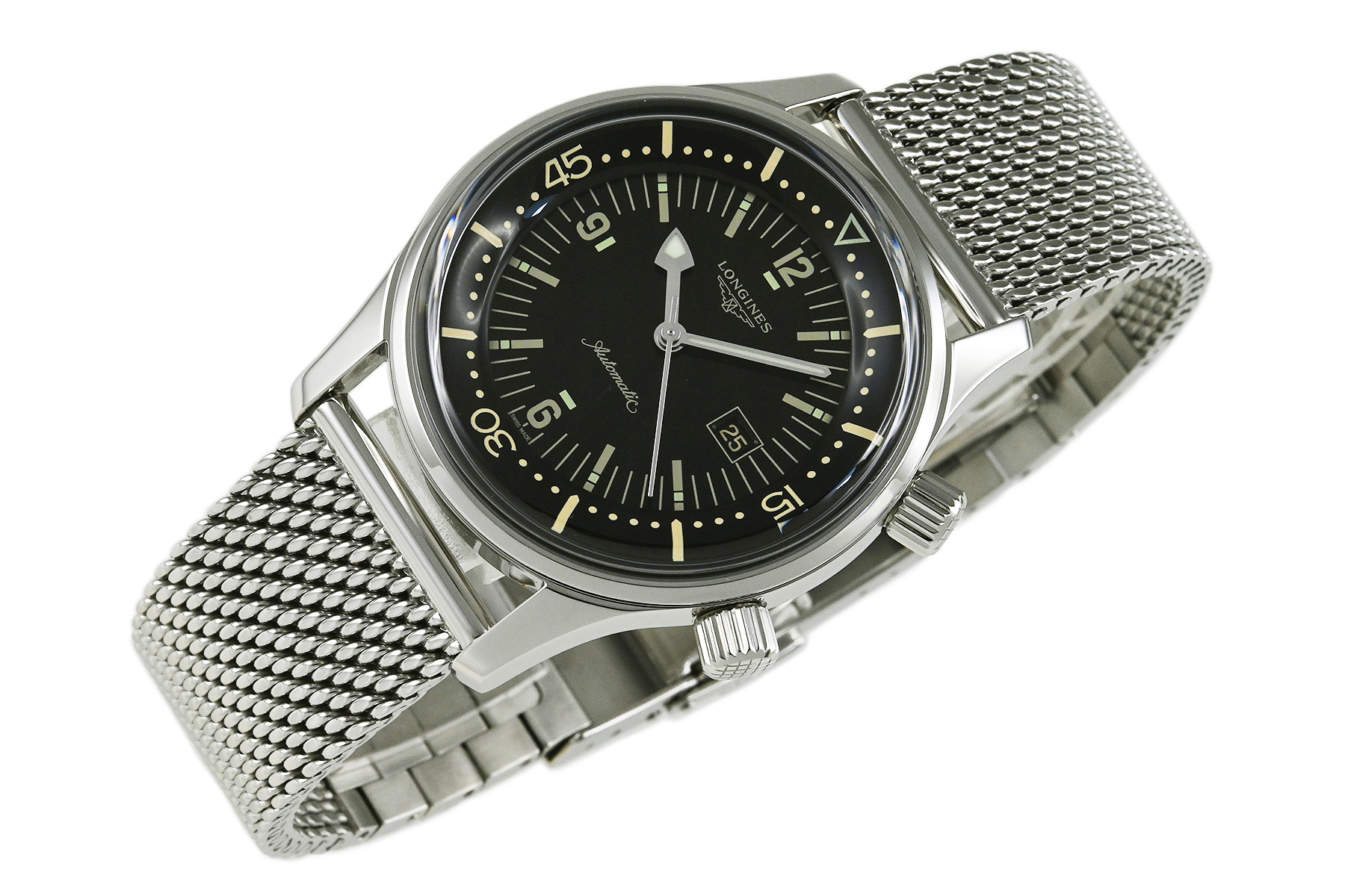 | コメント | 1960年代の傑作ダイバーモデルを復刻した「レジェンドダイバー」、小振りな36mmサイズの自動巻モデルです。ヴィンテージ感のあるオシャレなモデルです。2時のリューズでインナーベゼルを動かし、4時のリューズで時間を調整、上下ともねじ込み式です。3時位置にデイト表示を備えております。少々の軽い擦りキズはありますが目立つ様なキズはありません。保証書の型番は革ベルト仕様の型番が記載されていますが現在はステンレスベルトに交換されています。付属の革ベルトは若干の使用感はありますが酷い汚れや傷みはありません。 |