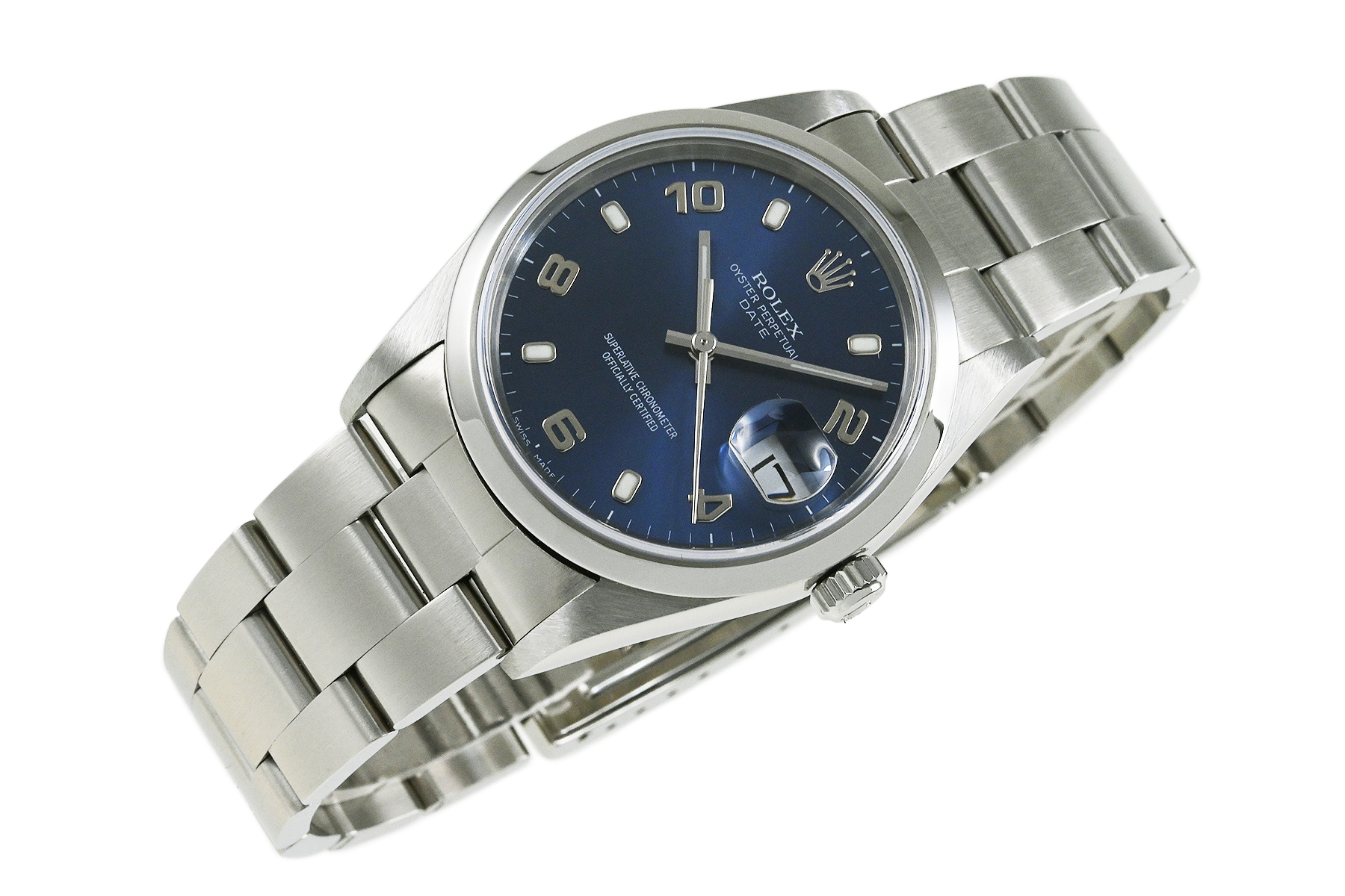 | コメント | 日付けを備えたポリッシュベゼルのシンプルな3針モデル「オイスターパーペチュアル・デイト Ref.15200」、小振りなケース径34mmメンズ自動巻モデルです。人気のブルーダイアルです。この型は生産終了しています。使用に伴う若干の軽い小キズ・擦りキズはありますが目立つ様な深いキズはありません。国内正規店にて購入品です。 |