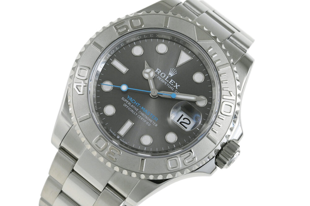 | コメント | セーラーのスピリットを体現したシリーズ「ヨットマスター」。ケース径40mmの「ヨットマスター 40 Ref.126622」、スチール&プラチナベゼルモデルです。サンドブラスト仕上げを施した950プラチナ製の両方向回転ベゼルが特徴的、落ち着いたグレーカラーに水色塗装の秒針とYACHTMASTERの印字がオシャレな雰囲気です。ロレックス完全自社製造の高精度クロノメーターキャリバー3235を搭載。少々の軽い擦れはありますが目立つ様なキズはありません。 |