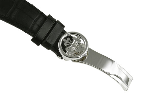 | コメント | 8時位置と10時位置のプッシュボタンでローカルタイムを操作する「カラトラバ・トラベルタイム Ref.5134」、プラチナモデルです。この型は生産終了となっています。少々の軽い擦りキズはありますが目立つ様な深いキズはありません。 |