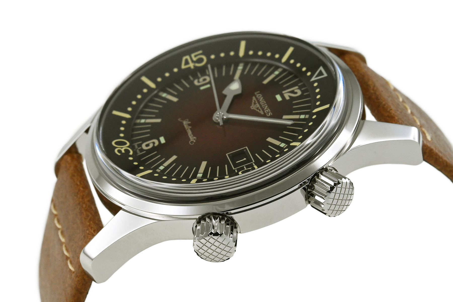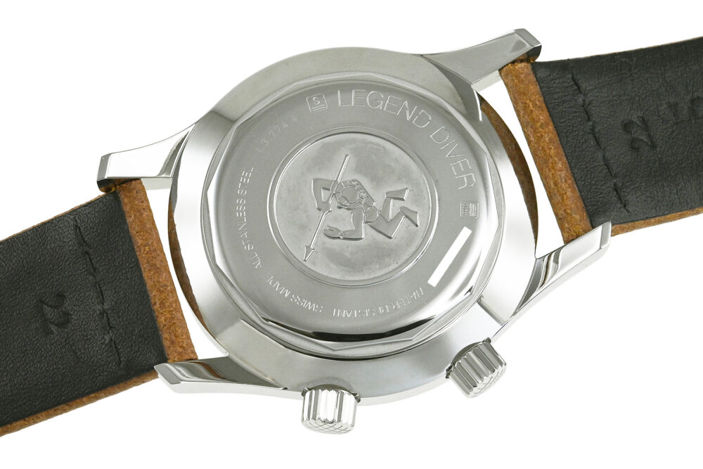 | コメント | 1960年代の傑作ダイバーモデルを復刻した「レジェンドダイバー」、ヴィンテージ感のあるオシャレなモデルです。上のリューズでインナーベゼルを動かし、下のリューズで時間を調整、上下ともねじ込み式です。3時位置にデイト表示を備えております。国内正規店にて購入品、僅かな擦れや革ベルトに軽い巻き癖はありますが未使用の状態です。 |