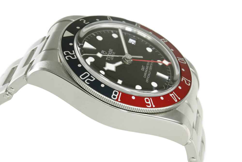 | コメント | ロレックスの兄弟ブランド「チューダー」。イカ針が特徴的な70年代の人気サブマリーナモデル通称「イカサブ」を現代版に復刻した「ブラックベイ」、GMT機能搭載モデルです。マニュファクチュールキャリバーMT5652を搭載しています。バーガンディ―×ネイビーベゼルが印象的です。裏蓋などに少々の軽い擦りキズはありますが、目立つ様な深いキズはありません。 |