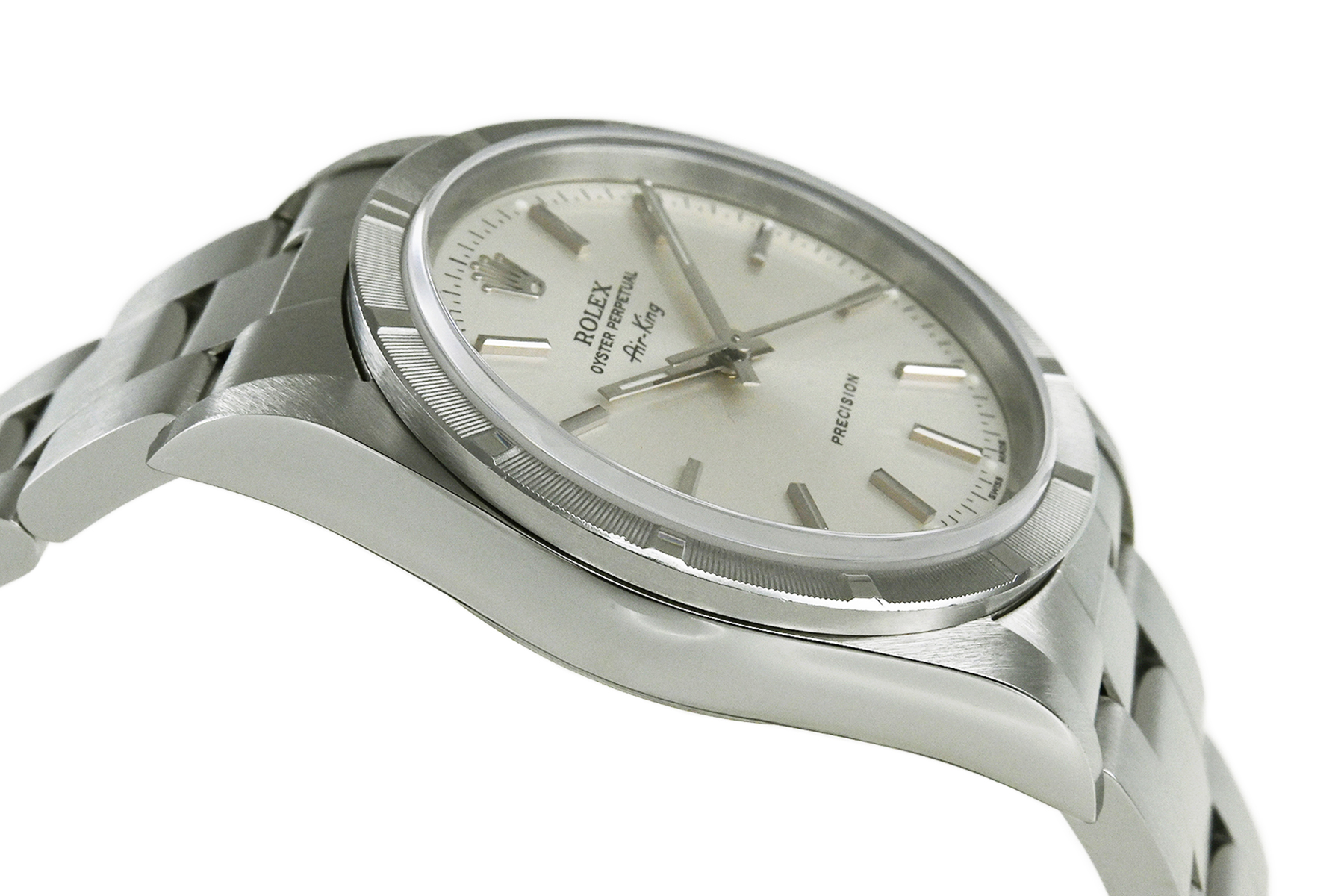 | コメント | エンジンターンドベゼルが印象的な「オイスターパーペチュアル エアキング Ref.14010M」、生産終了モデルです。ベゼル、裏蓋、バックルなど使用に伴う多少のキズ・擦りキズがあります。目立つ様な大きなキズはありません。 |