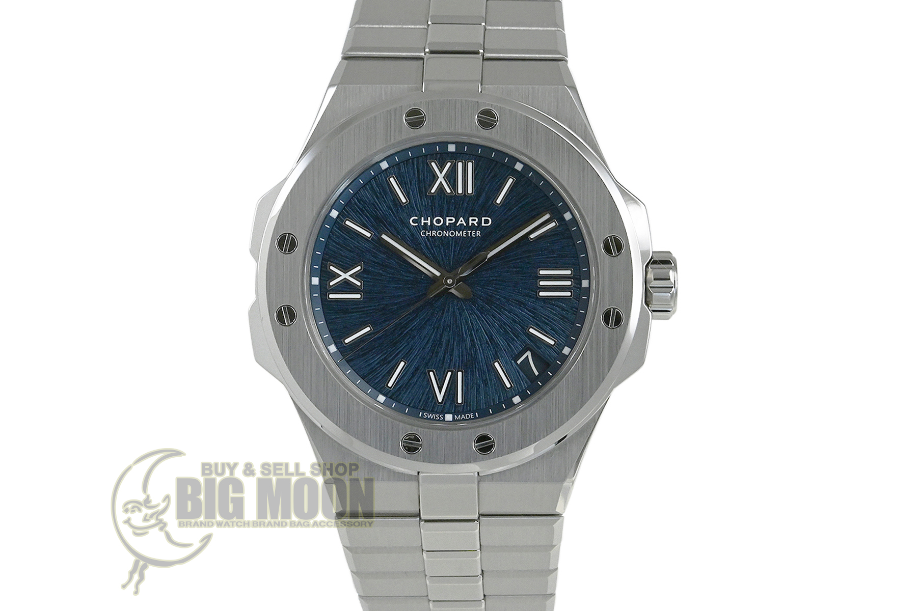 コメント 自社一貫生産する高級時計メーカー(マニュファクチュール)ショパール。アルプスと威厳あるワシの力強さにインスピレーションを得たコレクション「アルパイン イーグル」自動巻モデルです。ワシの虹彩をイメージさせるデザインが施されたブルーダイアルが印象的、スポーティーでオシャレなモデルです。COSC認定クロノメーター キャリバー01.01-Cを搭載。使用に伴う若干の擦りキズはありますが目立つ様な深いキズはありません。