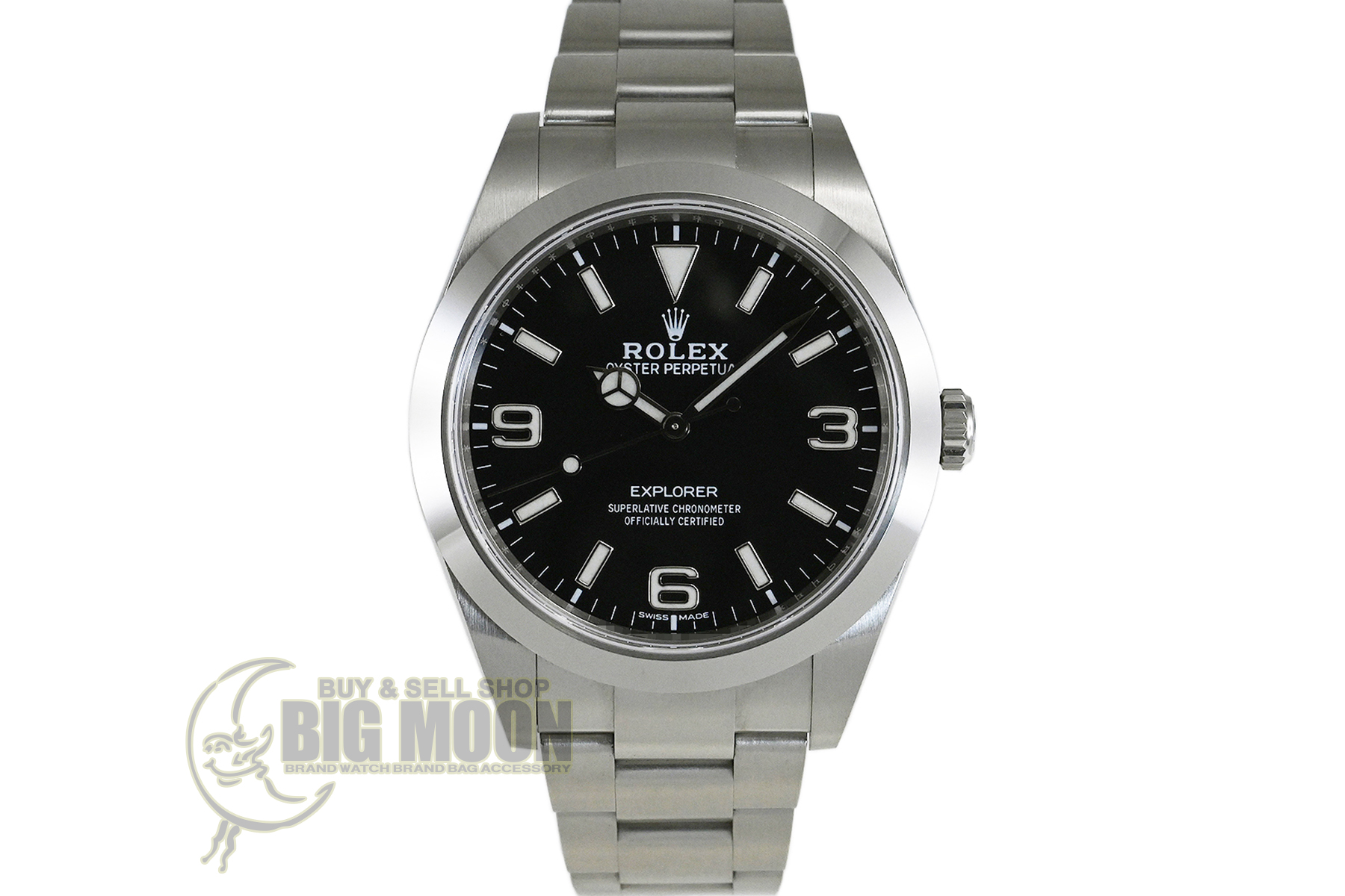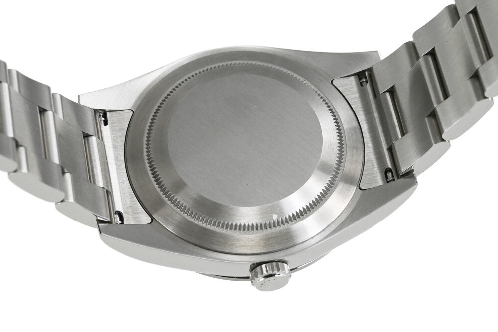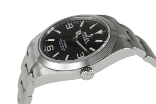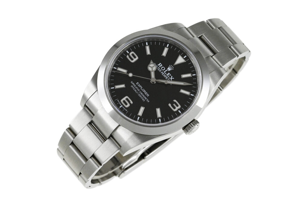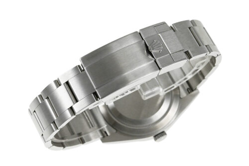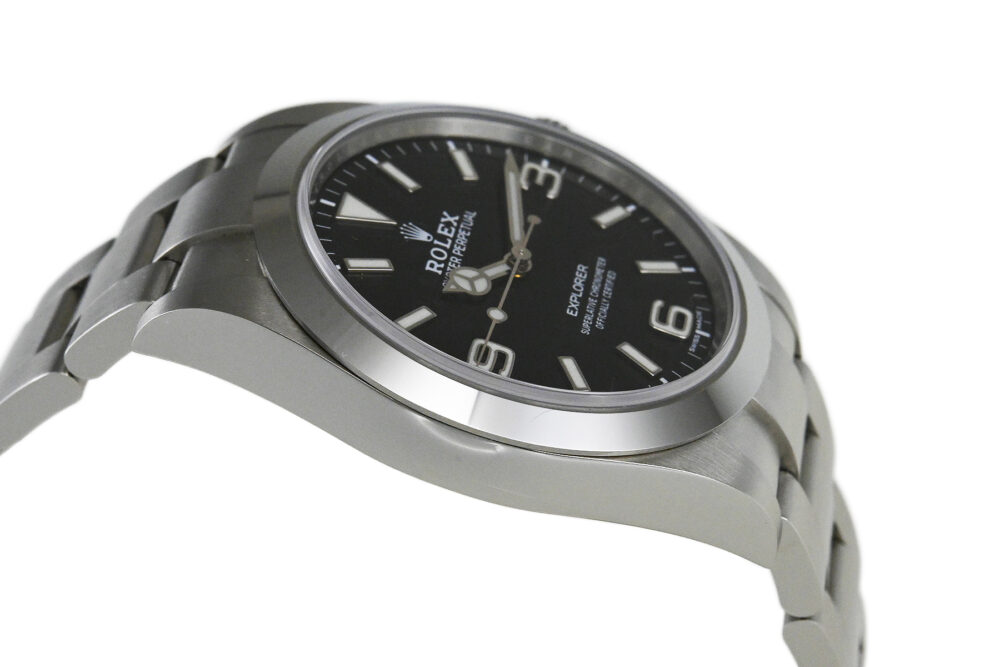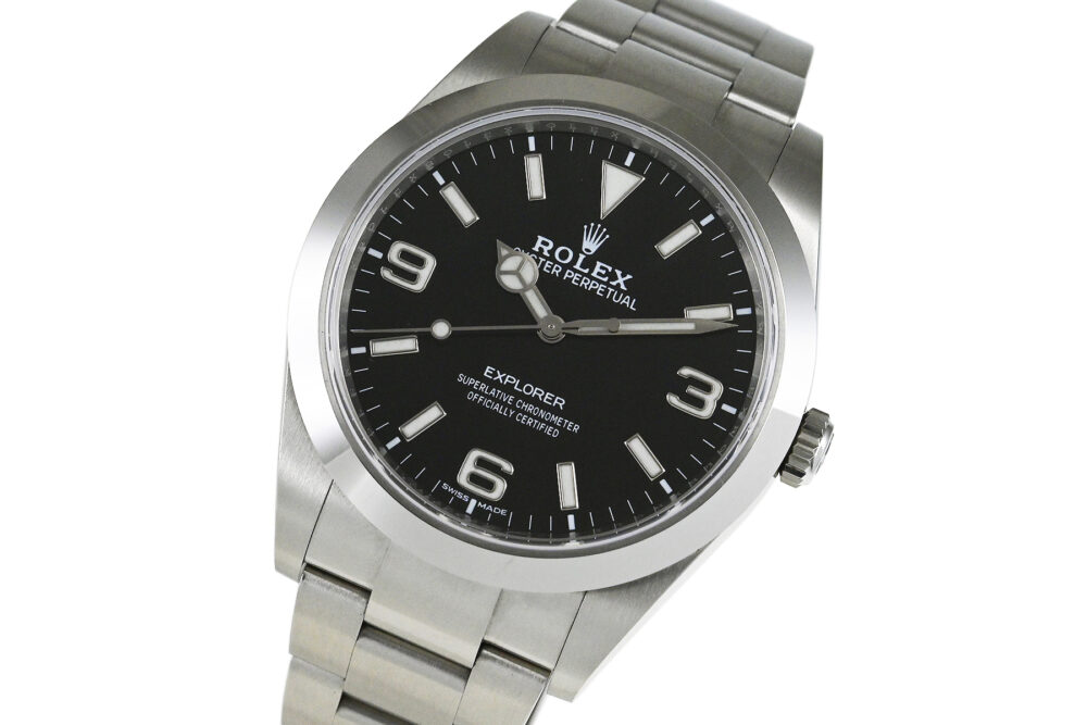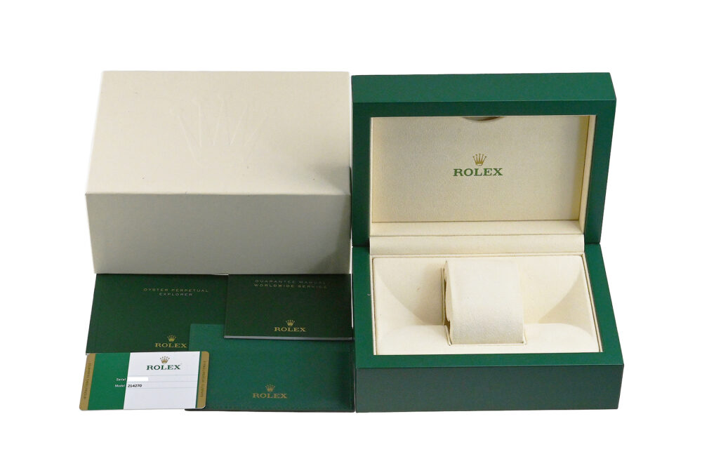 コメント 1953年デビューの「エクスプローラーI」。シンプルでスタイリッシュなデザインはどんなシーンにもマッチする、スポーツ・ロレックス人気モデルです。2010年にモデルチェンジした「Ref.214270」は、ケースサイズが35mmから39mmにサイズアップし、ダイアルは2016年から採用のアラビアインデックス(3・6・9)にクロマライト夜光が塗布された仕様です。ロレックス完全自社製造の高精度クロノメーターキャリバー3132を搭載しています。ベゼルエッジ部分6時位置辺りに極々僅かなあてキズと、裏蓋に1ヶ所キズがあります。その他は僅かな軽い擦りキズはありますが目立つ様な深いキズはありません。