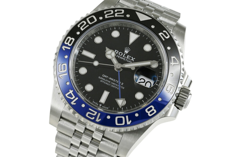 | コメント | 1955年に誕生した「GMTマスター」。進化したGMTマスターIIは回転ベゼルにより3箇所の時刻を知る事が出来ます。両方向回転式、ブラック/ブルーのセラミック製ベゼルが印象的、エレガントなジュビリーブレスレット仕様です。約70時間のパワーリザーブを備えたロレックスキャリバー3285を搭載しています。僅かな軽い擦りキズはありますが目立つ様なキズはありません。 |