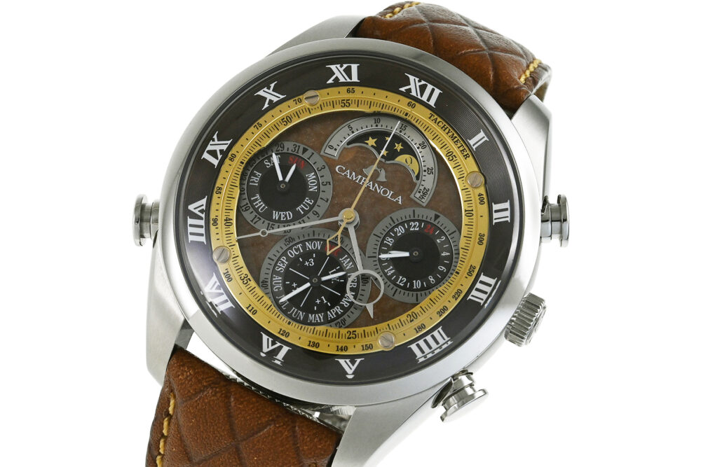 | コメント | ケースの中に無限に広がる「宙空の美」をコンセプトとした「カンパノラ」。2020年発売、日本古来の色味「焦香(こがれこう)」表現した250本限定のグランドコンプリケーションモデルです。ミニッツリピーター、ムーンフェイズ、パーペチュアルカレンダー、スプリットクロノグラフの4大複雑機構を備えています。使用に伴う多少の小キズ・擦りキズはありますが目立つ様な大きなキズはありません。 |