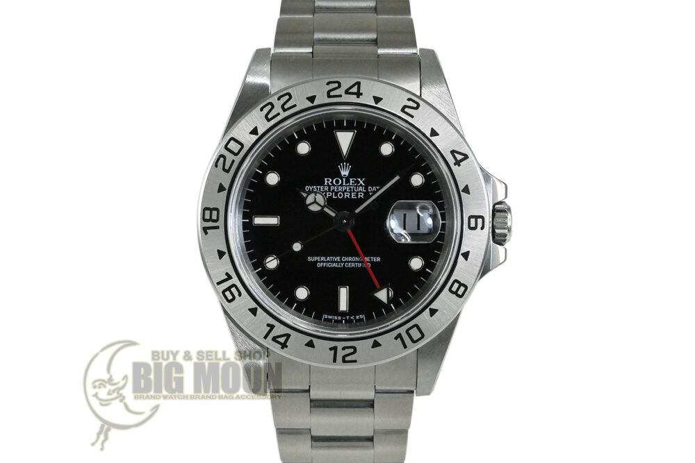 | コメント | 1971年に誕生した「エクスプローラーII」、生産終了モデル「Ref.16570」です。シングルバックルブレスが付いています。使用に伴う若干の小キズ・擦りキズはありますが目立つ様な深いキズはありません。2013年6月に正規修理サービスにてオーバーホールをしています。 |