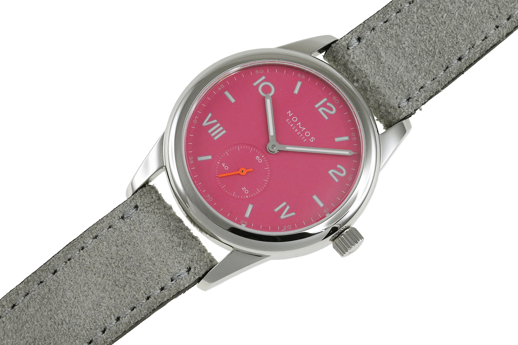 | コメント | スポーティでカジュアルな「クラブ キャンパス」、小振りな36mm手巻モデルです。キレイなラウンドケースにディープピンクダイアルが特徴的です。ノモス自社開発手巻ムーブメント「キャリバー アルファα」を搭載しています。若干の軽い擦りキズはありますが目立つ様な深いキズはありません。 |