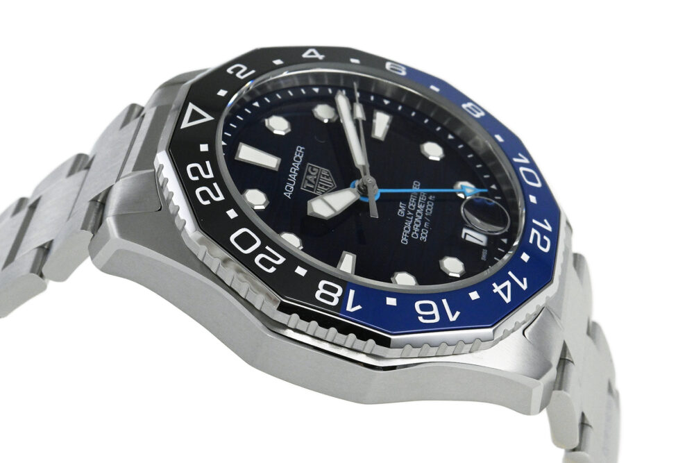 コメント あらゆるマリンスポーツに求められる精密さをめざして設計されたスポーツ・ウォッチ「アクアレーサー」。スタイリッシュなデザインが魅力のGMTモデルです。昼夜をブラックとブルーで色分けしたベゼル、サンレイ加工サテン仕上げを施したディープブルーダイヤル、ライトブルーのGMT針が特徴的です。キャリバーTH31-03を搭載しています。バックルなど少々の軽い擦りキズはありますが目立つ様な深いキズはありません。