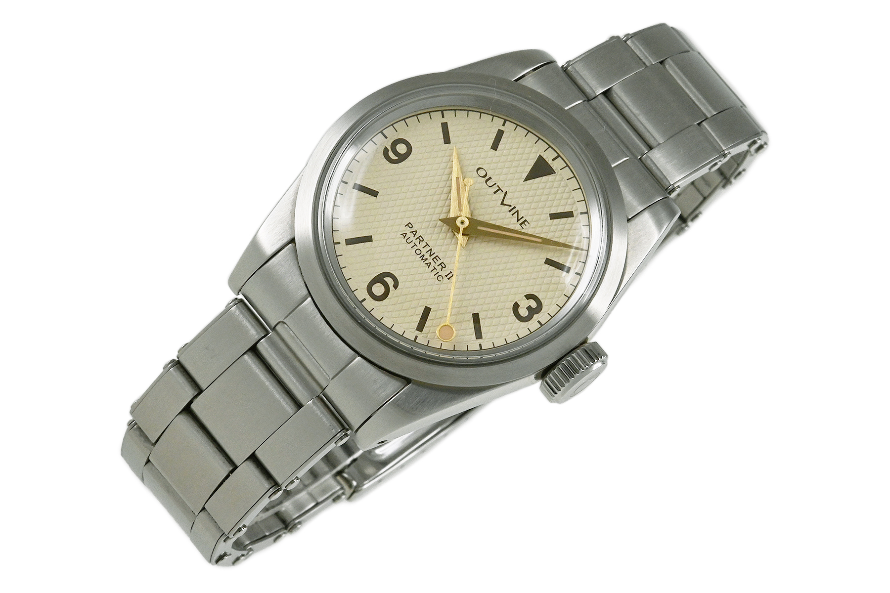| コメント | 3・6・9アラビアインデックスのハニカムダイアルを採用したヴィンテージテイストなデザインが特徴的なメイド・イン・ニッポンモデルです。使用に伴う若干の軽い擦りキズはありますが目立つ様な深いキズはありません。 |