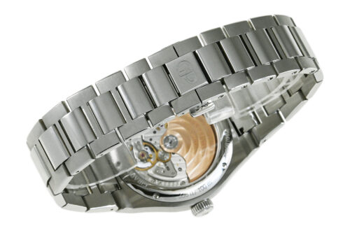 | コメント | 優れた機能性と品質、現在もマニュファクチュール(自社一貫生産)という伝統を貫く老舗ブランド「ジラール・ペルゴ」。8角形のベゼルが特徴的な「ロレアート」コレクション、スイスと日本の外交関係樹立160周年を記念した100本の日本限定モデルです。サンレイ ギョーシェ仕上げの藍色 エナメルダイアルが特徴的、裏蓋に「Special Edition of 100 pieces」の刻印があります。12時側ブレスサイドに1ヶ所線キズがあります。その他若干の軽い擦りキズはありますが目立つ様な深いキズはありません。国内正規店にて購入品、2025年2月に正規修理サービスにて巻上部修理点検・調整をしています。 |