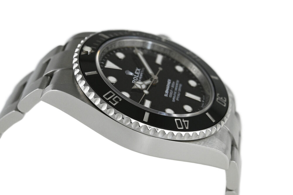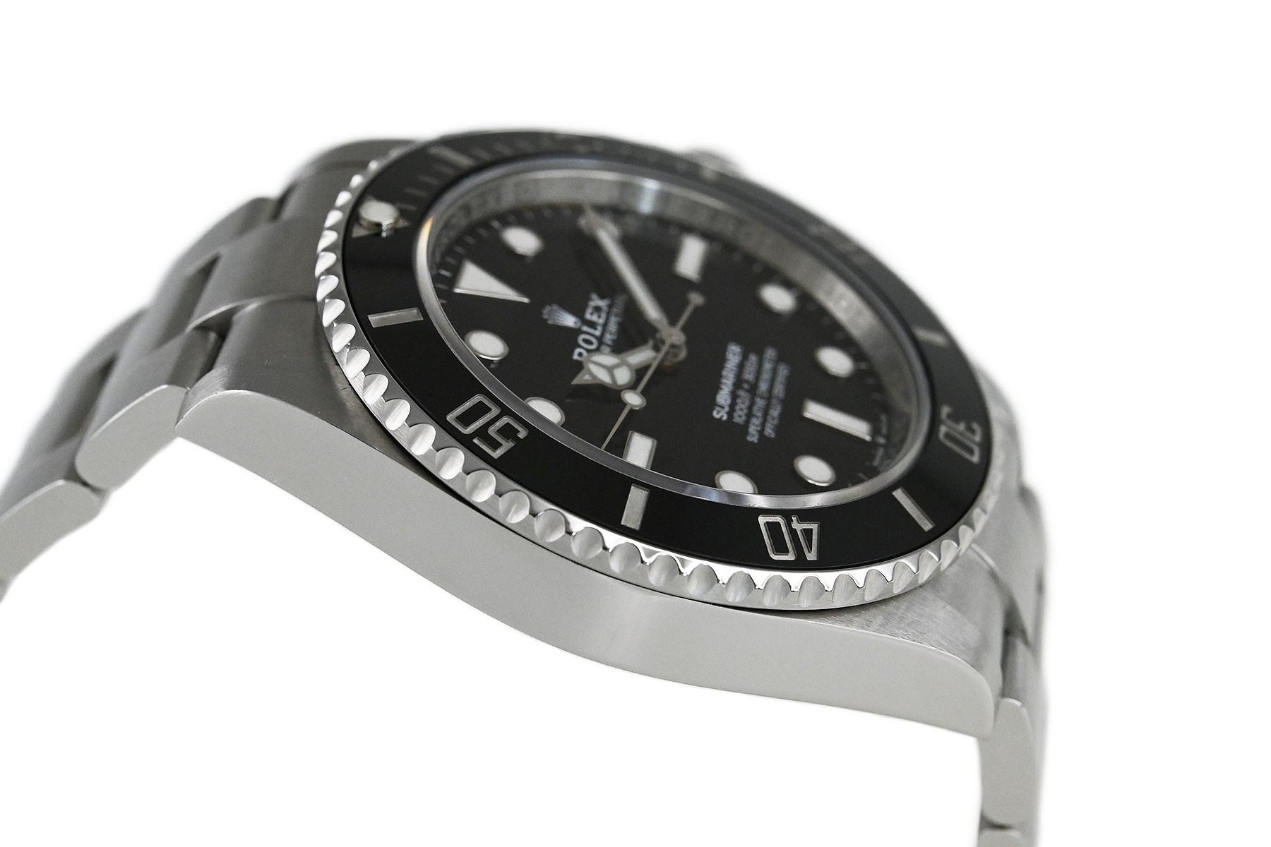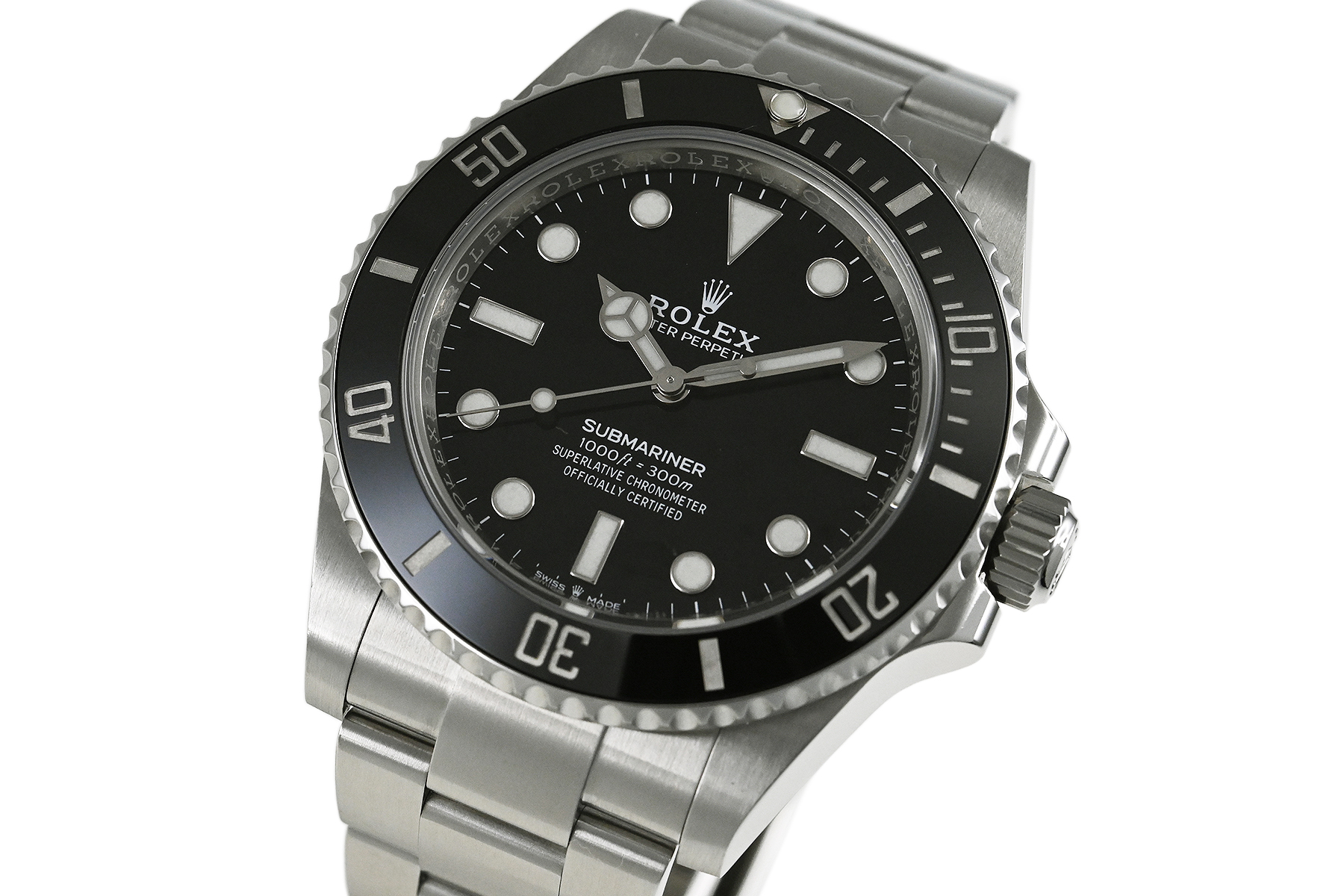 | コメント | 1953年に世界初の100mの防水性をもつ時計として誕生した「サブマリーナー」。セラミックベゼル、グライドロッククラスプ機能搭載ブレスを採用した「サブマリーナー・ノンデイト Ref.124060」です。ロレックス完全自社製造の高精度クロノメーターキャリバー3230を搭載しています。ラグ部分など多少のキズ・擦りキズがあります。 |