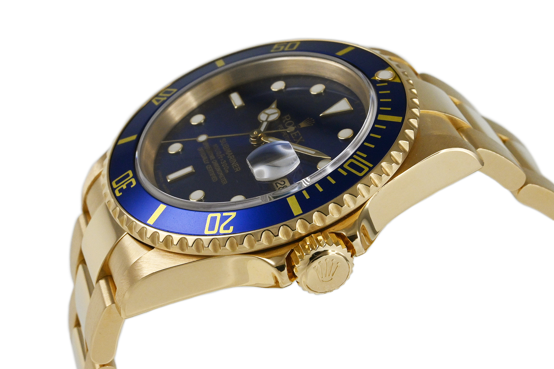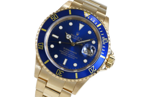 | コメント | 1953年の発売以来、不動の人気を誇る人気ダイバーズウォッチ「サブマリーナー」。1989年~2008年まで生産された「Ref.16618」。華やかなK18イエローゴールド無垢に色鮮やかなブルーダイアルが印象的です。使用に伴う若干の軽い小キズ、擦りキズはありますが、目立つ様な深いキズはありません。2025年2月に当店契約の修理サービスにてオーバーホールをしています。 |