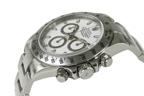 | コメント | 1963年に誕生した人気スポーツ・ロレックス「コスモグラフ デイトナ」。2000年~2016年まで生産された「Ref.116520」ホワイトダイアルステンレスモデルです。ベゼルやケース、インダイアルなどの鏡面部分のコントラストが魅力的で、スポーティーでエレガントなデザインとなっています。ベゼルなど使用に伴う若干の軽い擦りキズはありますが、目立つ様な深いキズはありません。国内正規店にて購入品です。 |