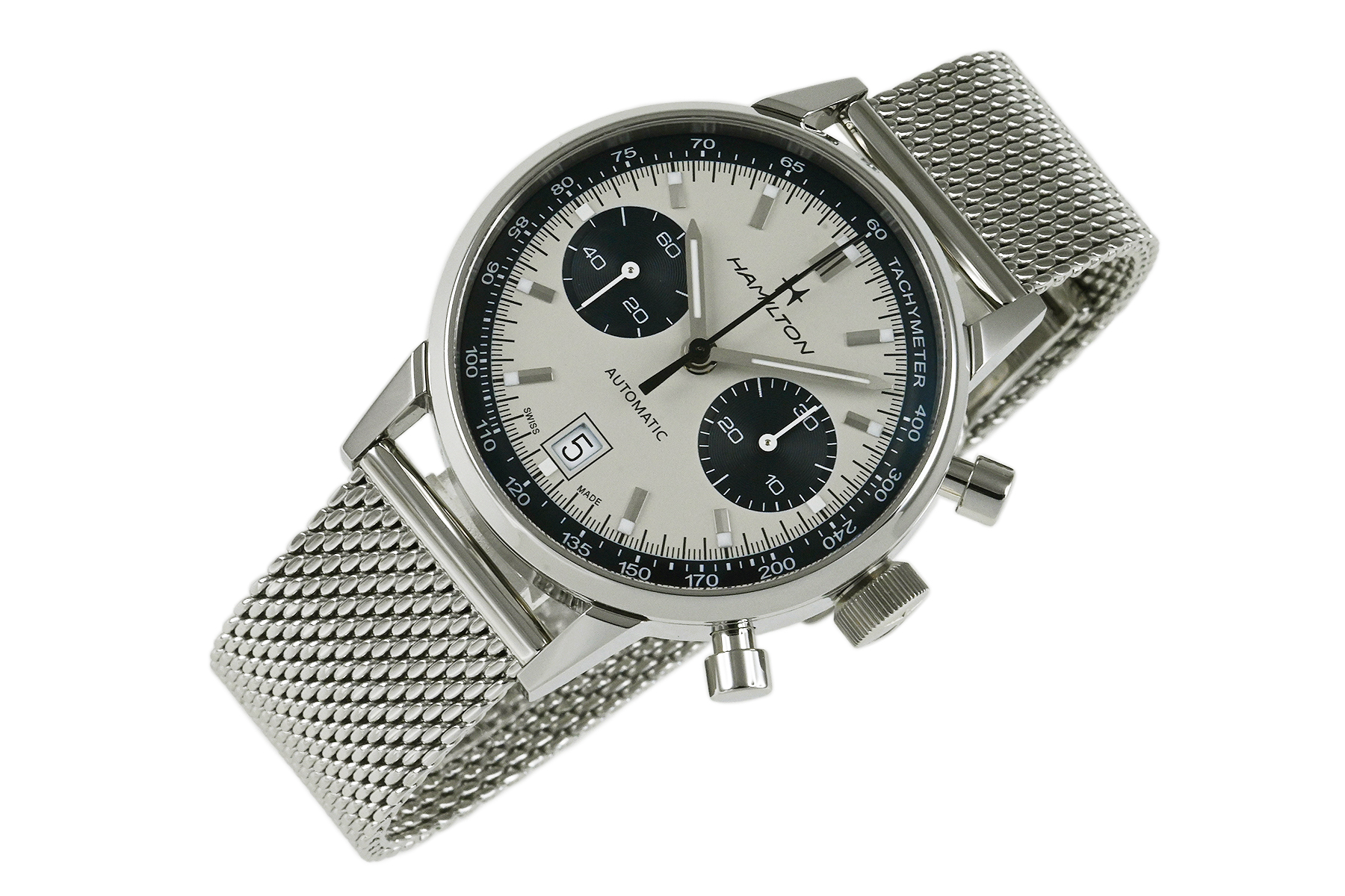 | コメント | 1892年、アメリカ合衆国ペンシルバニア州ランカスターで創業したハミルトン。ハミルトンのルーツであるアメリカンスピリットを体現する「アメリカンクラシック」コレクション、1968年に発表された名作「イントラマティック」を忠実に再現した復刻モデルです。クラシックなデザインとアイコニックなパンダダイヤルが特徴です。使用に伴う若干の小キズ・擦りキズはありますが、目立つ様な深いキズはありません。国内正規店にて購入品です。 |
