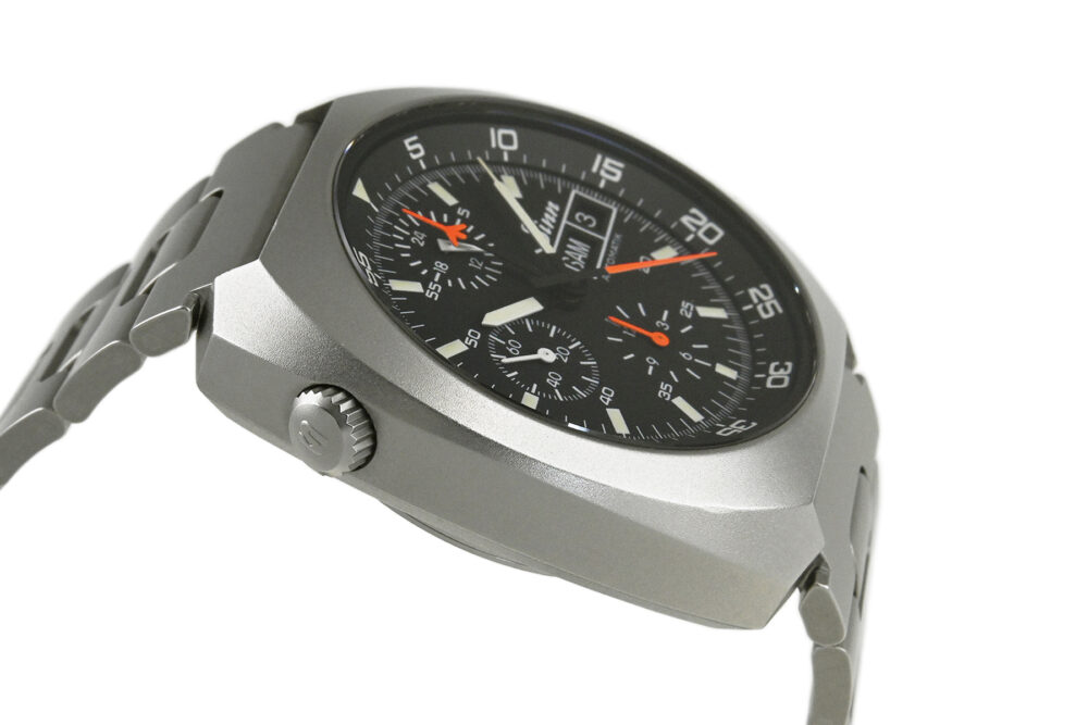 | コメント | 世界で初めて宇宙に持ち込まれたオートマチック・クロノグラフ「model.142」、レマニア5100ムーブ搭載モデルです。裏蓋には宇宙での信頼性を保証する「MISSION D1」のロゴと「1stAUTOMATIC CHRONOGRAPH IN SPACE」の文字が刻まれています。ケースエッジ部分の8時方向やラグ付近に面取りしたようなキズがあります。その他使用に伴う多少の擦りキズがあります。国内正規店にて購入品で、2022年9月に正規修理サービスにてオーバーホールしています。 |