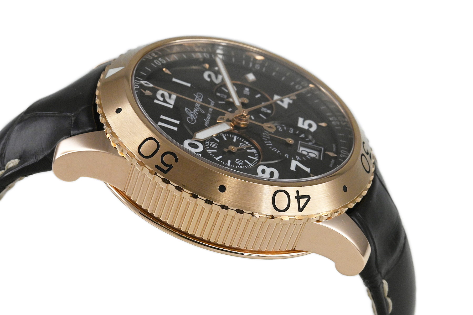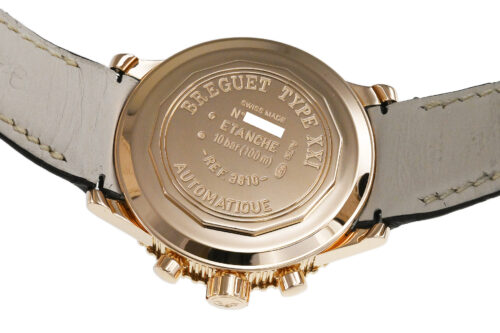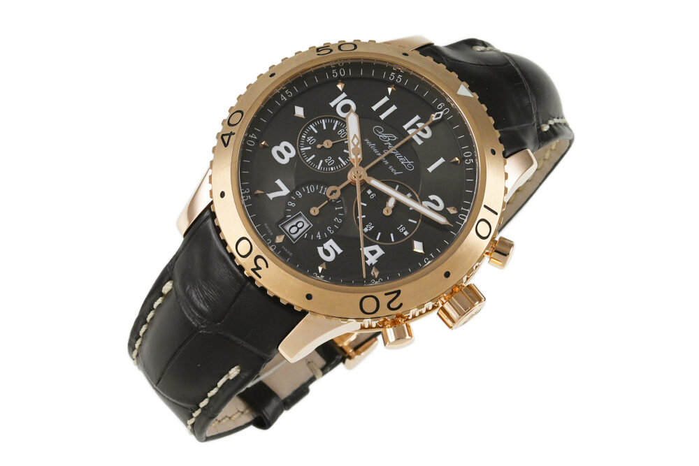 コメント 1775年、天才時計師アブラアン-ルイ・ブレゲがフランス・パリで創業した歴史ある高級時計ブランド「ブレゲ」。人気パイロットウォッチ「トランスアトランティック タイプXX」からサイズアップした後継モデル「タイプXXI」です。フライバック機能付き自動巻クロノグラフを搭載、3時位置のスモールセコンドがデイ&ナイト表示、6時位置が12時間積算計、9時位置が秒針、ダイアル外周が60分積算計となっております。ベゼルなど使用に伴う若干の軽い小キズ・擦りキズがあります。国内正規店にて購入品です。