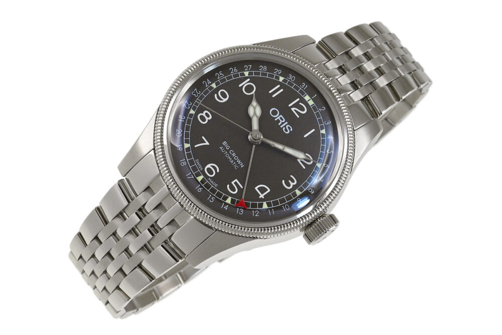 | コメント | オリスのアヴィエーションウォッチ「ビッグクラウン・ポインターデイト」、自動巻モデルです。コインエッジのベゼル、ポインターデイト表示を搭載したクラシックなデザインが魅力です。裏蓋シースルーバックとなっています。使用に伴う若干の擦りキズはありますが目立つ様な深いキズはありません。 |